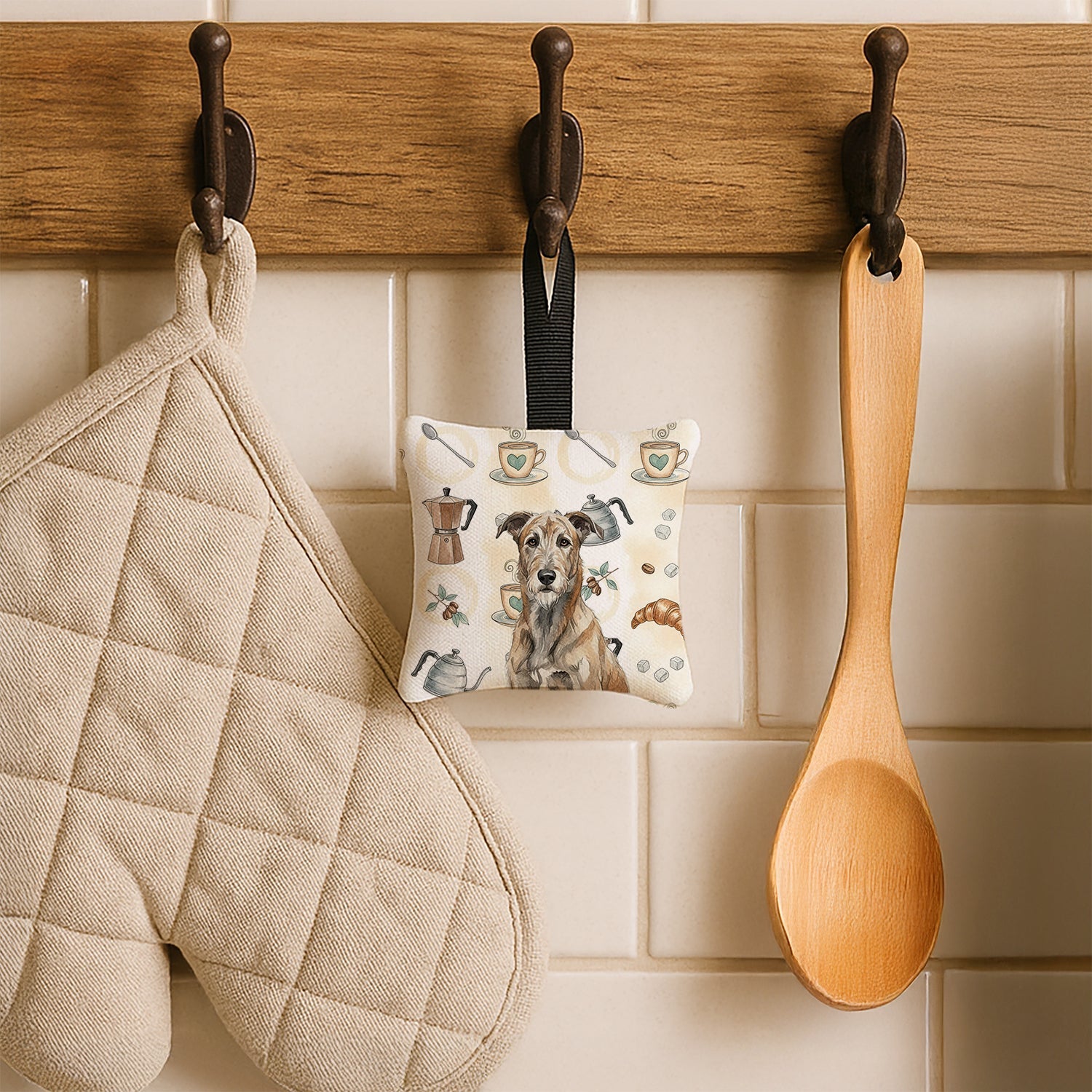 Brindle Irish Wolfhound Coffee Bar Hanging Square Fabric Ornament 3.5 × 3.5