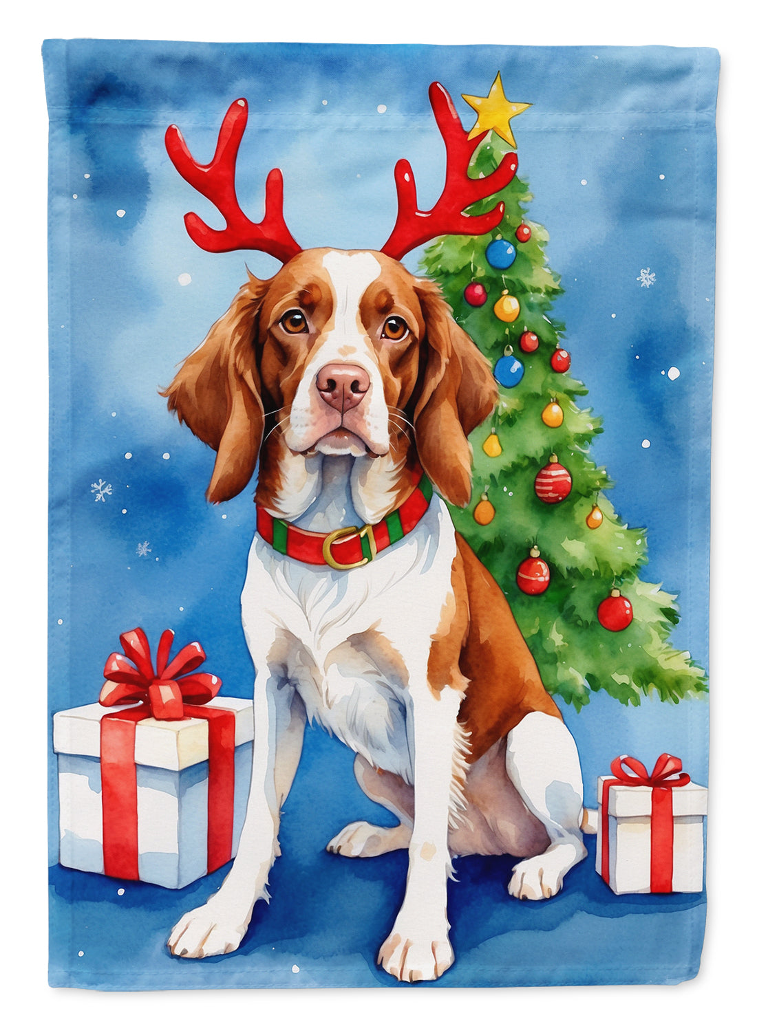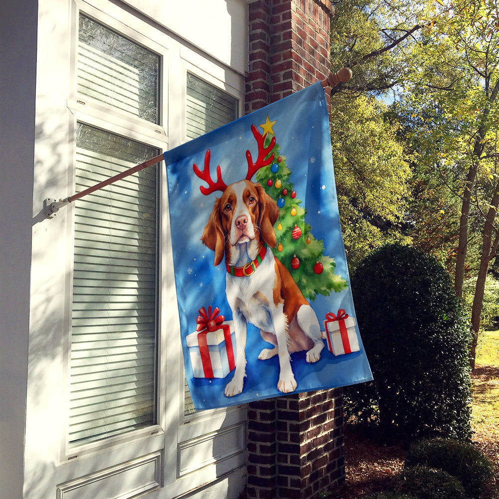 Brittany Spaniel Christmas Reindeer House Flag