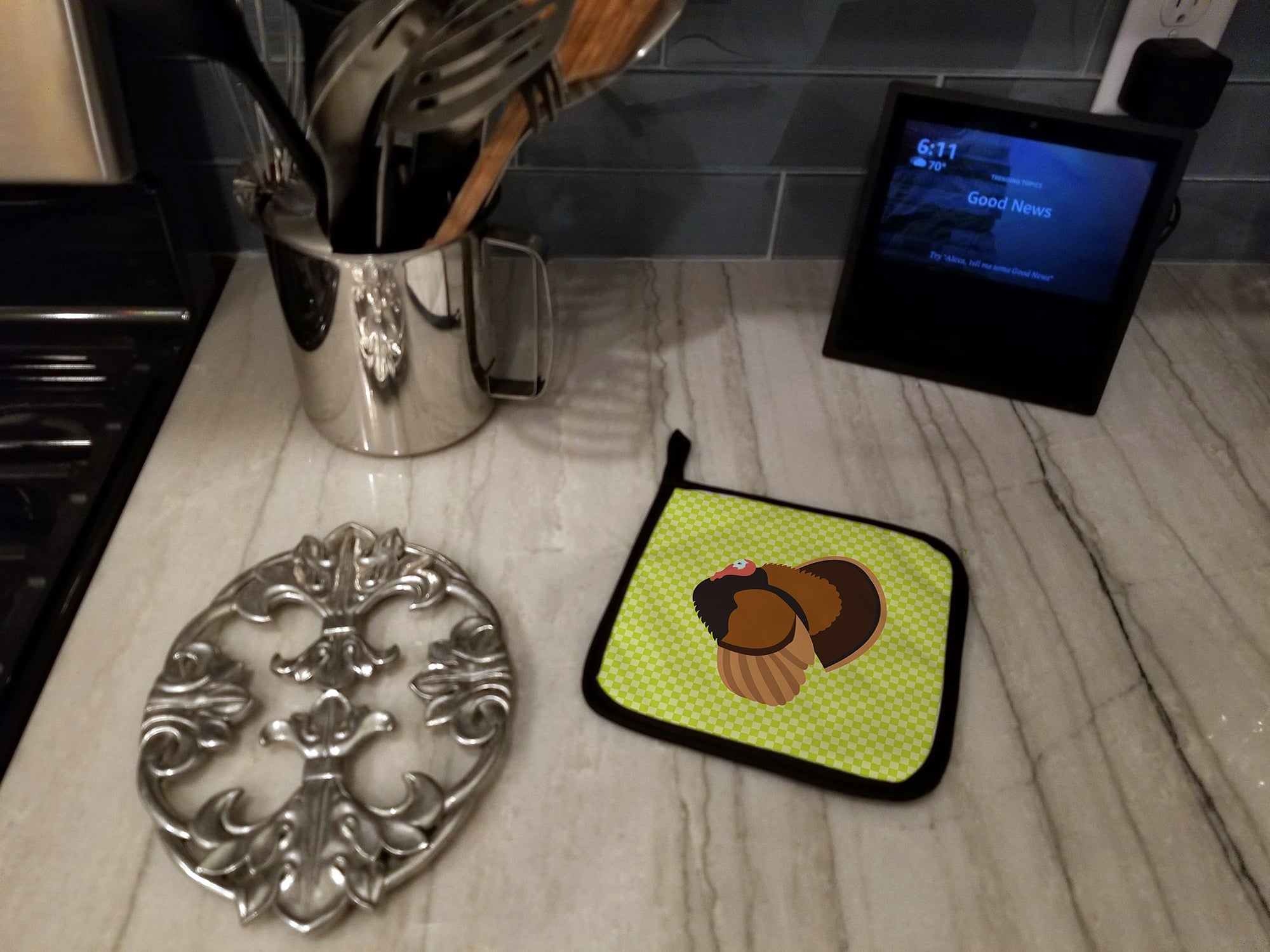 Bronze Turkey Green Pot Holders - Set of 2 - Heat-Resistant Kitchen Essentials BB7812PTHD