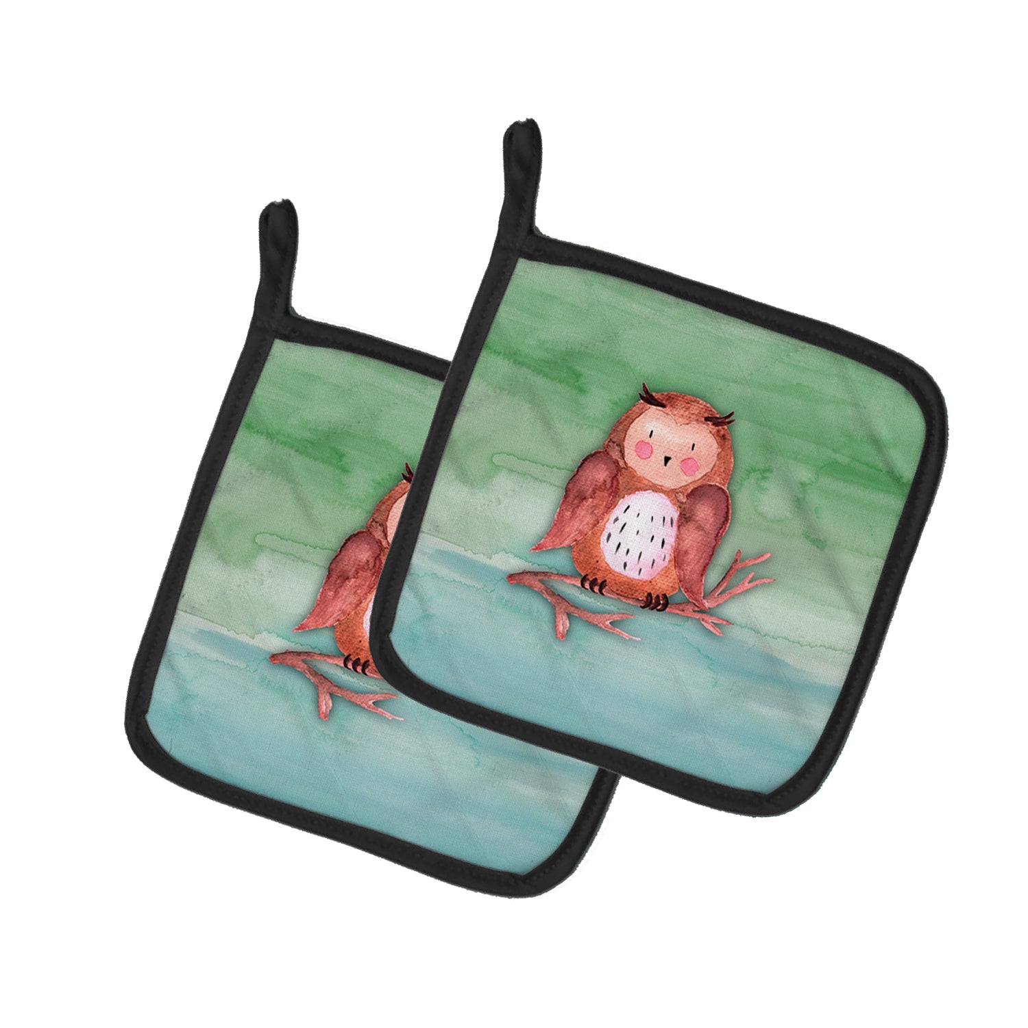 Brown Owl Watercolor Pot Holders - Set of 2 - Heat-Resistant Kitchen Essentials BB7443PTHD