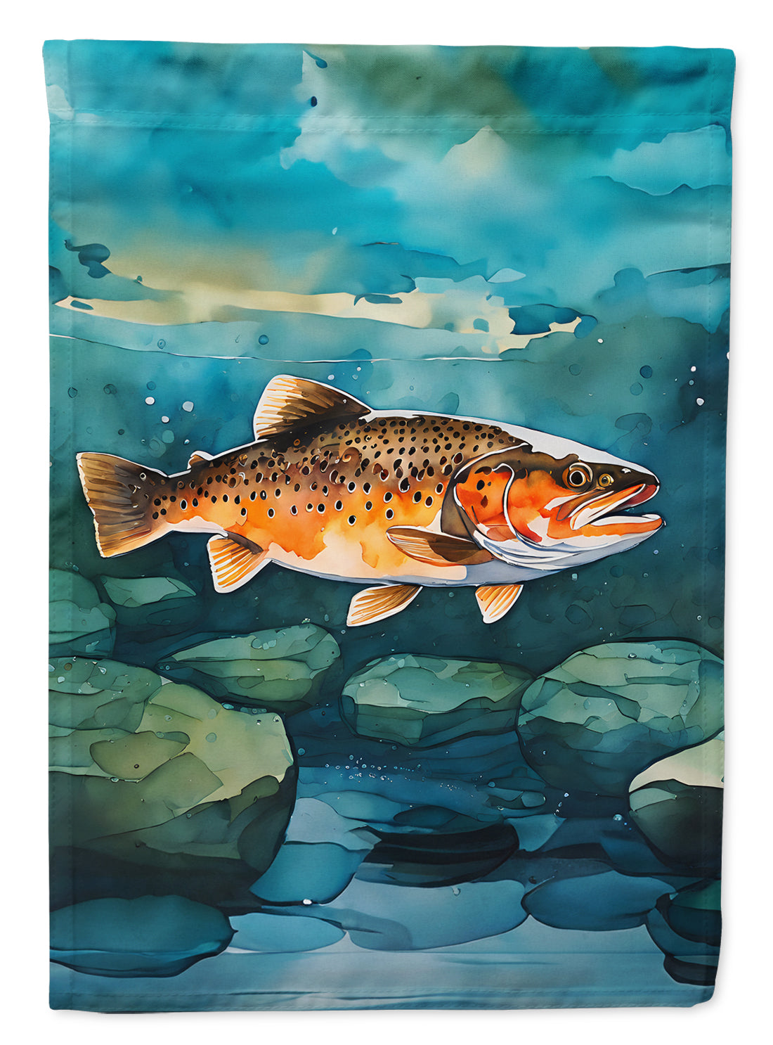 Decorate your space with our Brown Trout artwork on a Garden Flag. Enhance the beauty of your garden, patio, or yard with Caroline's Treasures Decorative Garden Flag, proudly made in the USA. Crafted from two pieces of thick, double-sided polyester fabric, this 2-ply garden flag is designed to withstand various weather conditions, making it water-resistant and weatherproof. Featuring correctly readable words on both sides, this garden flag offers a delightful visual experience from any angle. With its heavier weight, it stands out among other garden flags, ensuring stability and durability even in wind, rain, and snow. Measuring approximately 11 1/4 inches by 15 1/2 inches, this flag allows you to personalize your outdoor decor. It comes with a 1 1/2-inch sleeve sewn in, allowing easy attachment to any standard garden flag stand or garden size porch hanger (sold separately). Make a statement in your outdoor space with Caroline's Treasures Decorative Garden Flag, a vibrant and high-quality flag that adds color and personality to your surroundings. Proudly made in the USA, it's a symbol of quality craftsmanship and attention to detail.
