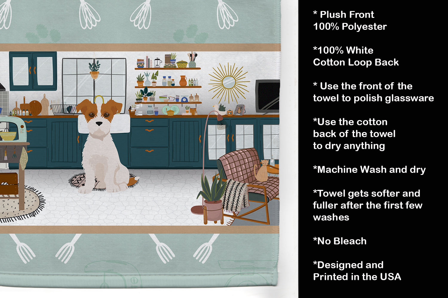 Brown White Wirehair Jack Russell Terrier in the Kitchen Kitchen Towel