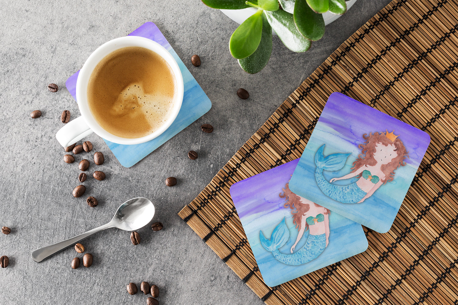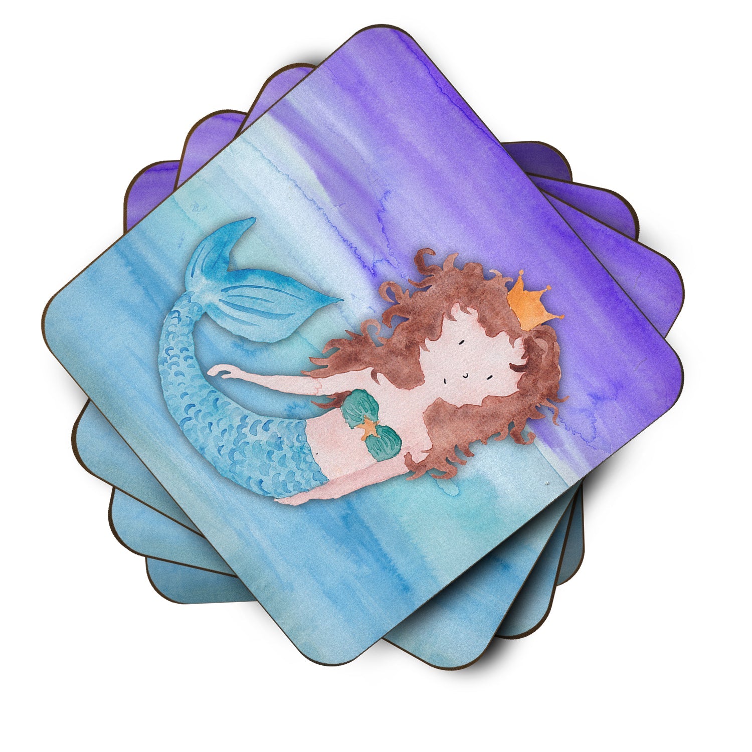 Brunette Mermaid Watercolor Foam Coaster BB7422FC