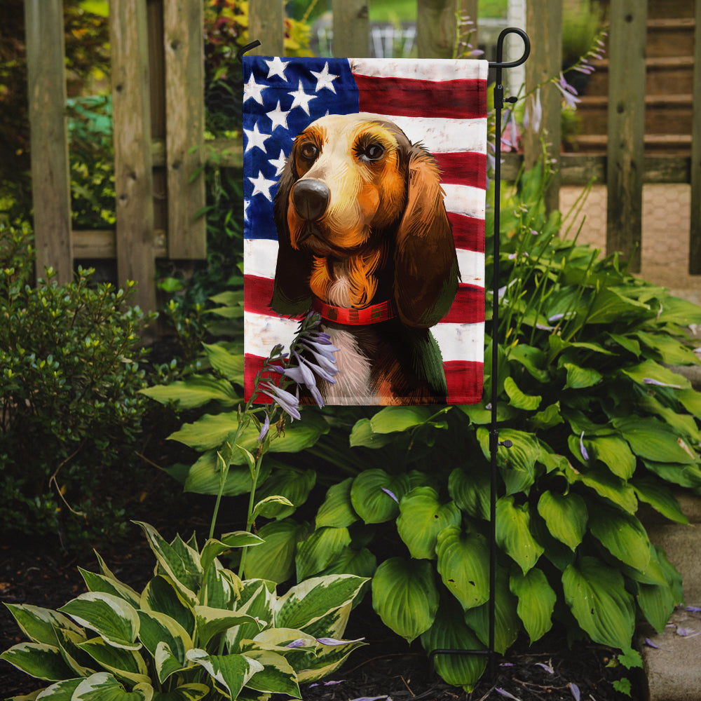 Decorate your space with our Bruno Jura Hound Dog artwork on a Garden Flag. Enhance the beauty of your garden, patio, or yard with Caroline's Treasures Decorative Garden Flag, proudly made in the USA. Crafted from two pieces of thick, double-sided polyester fabric, this 2-ply garden flag is designed to withstand various weather conditions, making it water-resistant and weatherproof. Featuring correctly readable words on both sides, this garden flag offers a delightful visual experience from any angle. With its heavier weight, it stands out among other garden flags, ensuring stability and durability even in wind, rain, and snow. Measuring approximately 11 1/4 inches by 15 1/2 inches, this flag allows you to personalize your outdoor decor. It comes with a 1 1/2-inch sleeve sewn in, allowing easy attachment to any standard garden flag stand or garden size porch hanger (sold separately). Make a statement in your outdoor space with Caroline's Treasures Decorative Garden Flag, a vibrant and high-quality flag that adds color and personality to your surroundings. Proudly made in the USA, it's a symbol of quality craftsmanship and attention to detail.