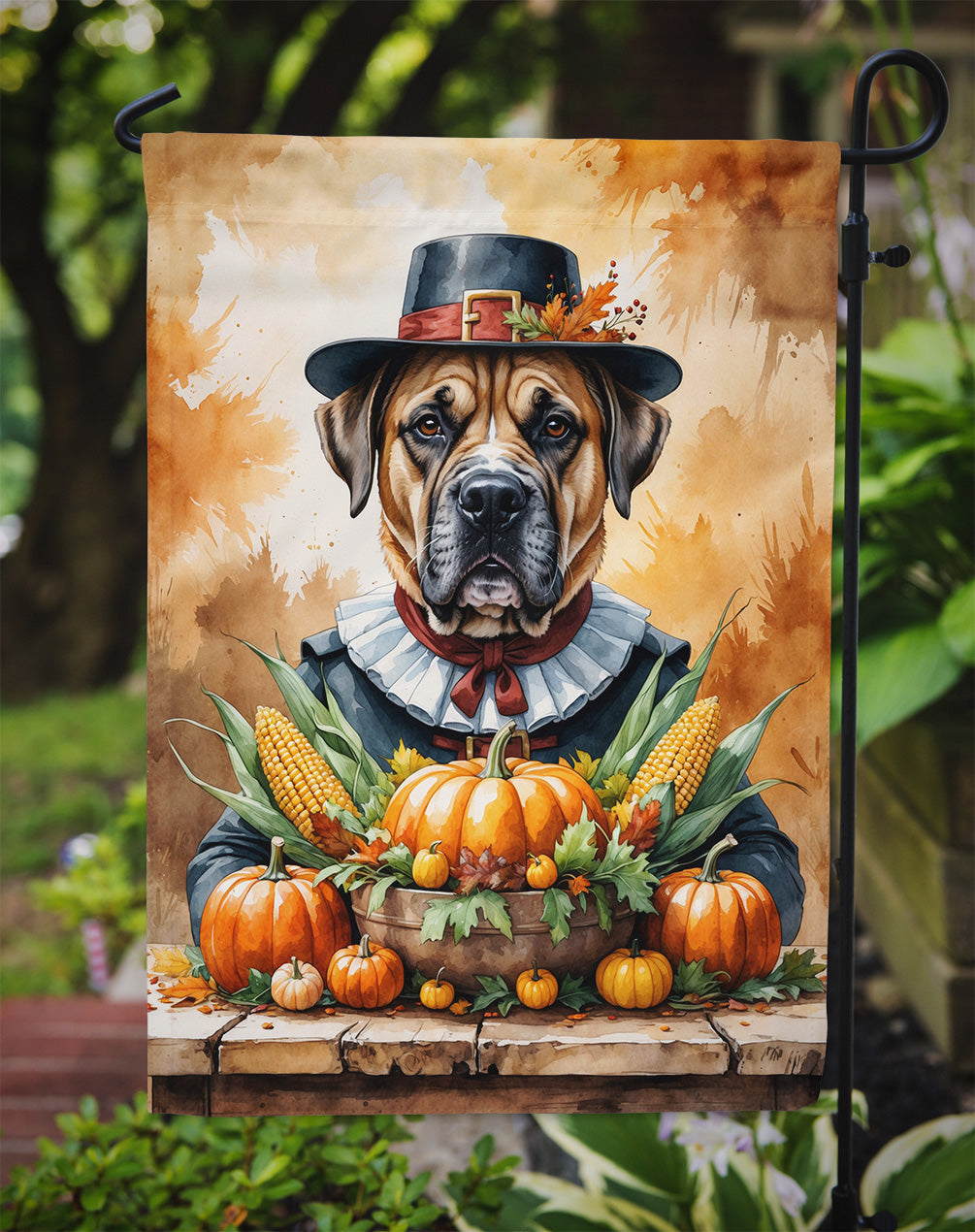 Garden Flag featuring breed specific Bullmastiff artwork. Celebrate Thanksgiving with this Thanksgiving Garden Flag. Enhance the beauty of your garden, patio, or yard with Caroline's Treasures Decorative Garden Flag, proudly made in the USA. Crafted from two pieces of thick, double-sided polyester fabric, this 2-ply garden flag is designed to withstand various weather conditions, making it water-resistant and weatherproof. Featuring correctly readable words on both sides, this garden flag offers a delightful visual experience from any angle. With its heavier weight, it stands out among other garden flags, ensuring stability and durability even in wind, rain, and snow. Measuring approximately 11 1/4 inches by 15 1/2 inches, this flag allows you to personalize your outdoor decor. It comes with a 1 1/2-inch sleeve sewn in, allowing easy attachment to any standard garden flag stand or garden size porch hanger (sold separately). Make a statement in your outdoor space with Caroline's Treasures Decorative Garden Flag, a vibrant and high-quality flag that adds color and personality to your surroundings. Proudly made in the USA, it's a symbol of quality craftsmanship and attention to detail.