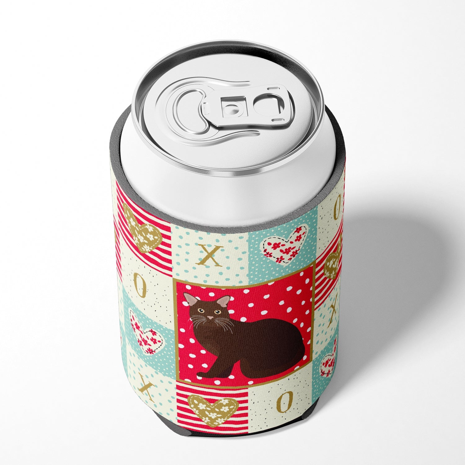 Decorate your space with our Valentine's Day Burmese artwork on a Hugger. Introducing our Can or Bottle Hugger, a must-have accessory for your beverage enjoyment. Designed to perfectly fit any standard 12-ounce can, this can cooler is the ideal companion to keep your soda, beer, or any drink of your choice at the perfect temperature. Our can hugger is not just functional, it's a work of art. Featuring full-color artwork that's permanently dyed into the foam, this hugger promises a design that's fade-resistant and made to last, making your beverage stand out in style. The design isn't silk-screened, which ensures the vibrancy of the colors, offering you a long-lasting, appealing aesthetic. What sets our can hugger apart is its high-quality foam fabric, which is not only durable but also machine washable for easy maintenance. Whether you call it a huggie, can coolie, can cozie, or beer holder, this drink sleeve brings style and function together. Proudly designed, printed, and sewn in the USA, our Can or Bottle Hugger is an ideal addition to your beverage experience. Match it with one of our insulated coolers for a complete gift set, adding flair and convenience to your drink enjoyment.