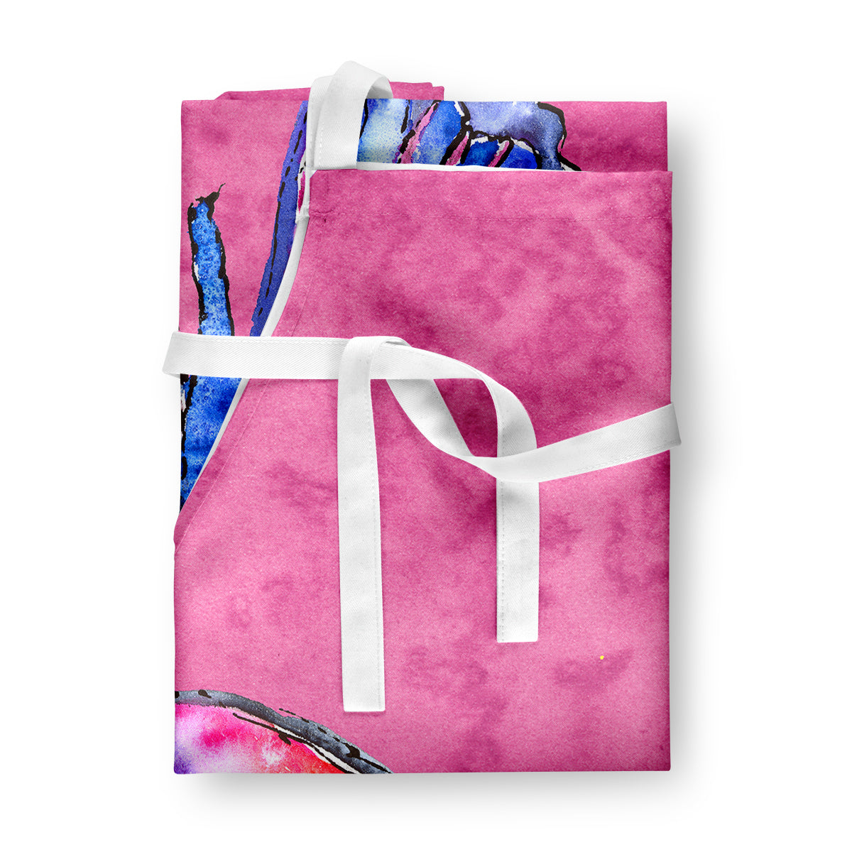 Elevate your cooking, baking, and grilling experiences with our versatile Kitchen or BBQ Apron. This Bib Style apron isn't just limited to culinary activities - it also serves as an excellent baking apron, artist apron, server apron, gardening apron, or even a dog grooming apron. The apron showcases vibrant full-color artwork contributed by one of our talented artists, bringing a dash of style to your daily tasks. With dimensions of approximately 27"W x 30"H, it provides ample coverage to protect your clothing from spills and splashes. Our apron is meticulously crafted from 100% Ultra Spun Polyester, known for its durability and lightweight nature. The apron comes with white tie straps, ensuring a comfortable and adjustable fit for all. It's a perfect choice for kitchen apron enthusiasts, whether you are a woman or a man. Designed for easy maintenance, this apron is fully machine washable. The quick-drying polyester material actively reduces staining, keeping your apron looking fresh and new for longer. Our beautifully designed apron isn't just a functional kitchen accessory - it's a fashion statement in the culinary world!
