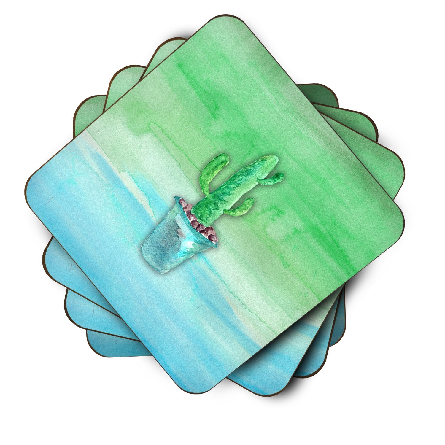 Cactus Teal and Green Watercolor Foam Coaster  BB7362FC