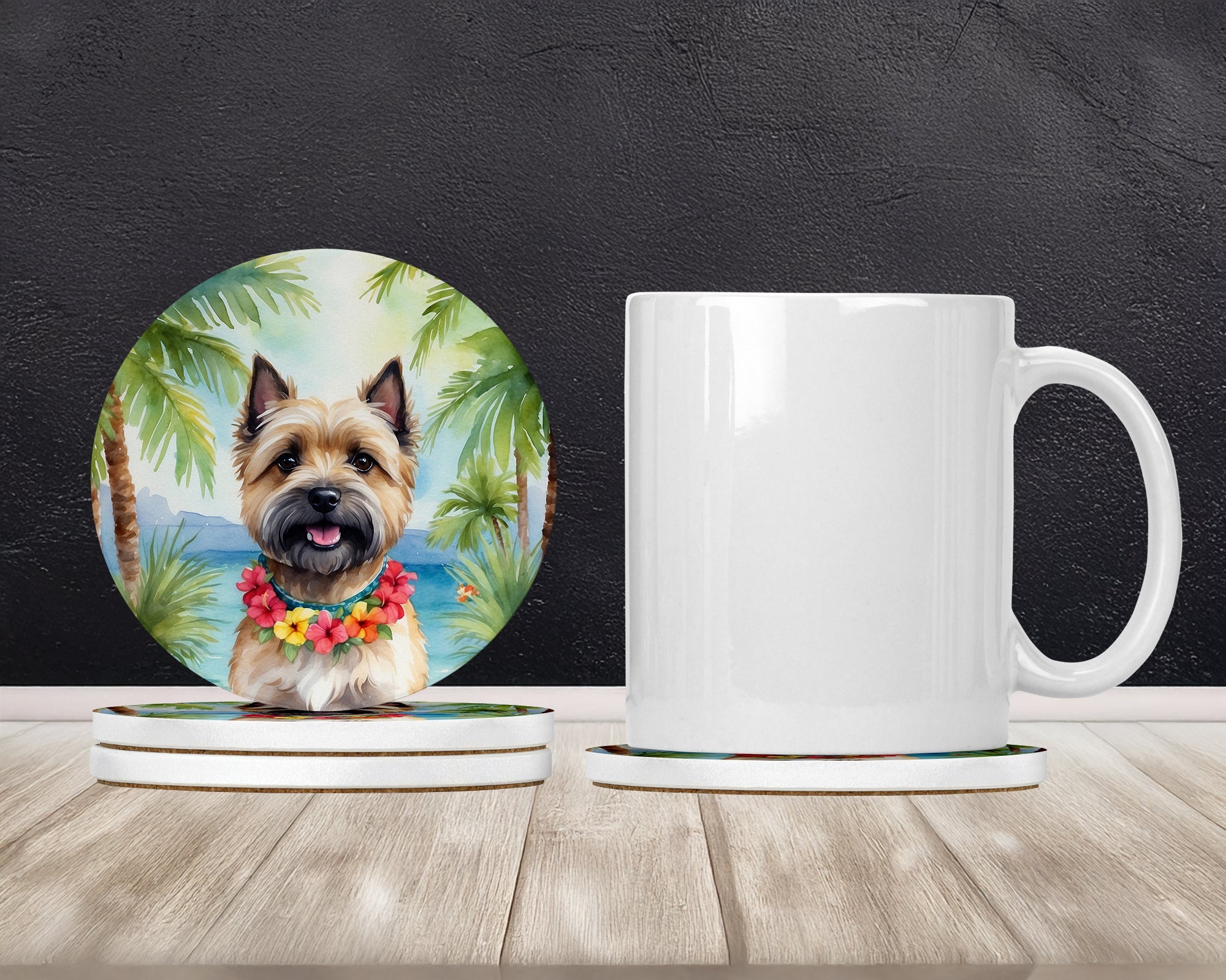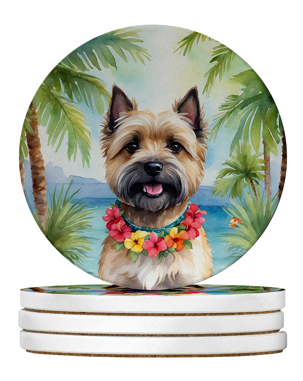 Large Sandstone Coasters Pack of 4 featuring breed specific Cairn Terrier artwork. Introducing Caroline's Treasures Large Sandstone Coasters Pack of 4, the perfect addition to your home decor. Each coaster measures nearly 4 inches and is made from absorbent sandstone with a cork backing. Designed and printed in the United States, these coasters feature artwork from Caroline's Treasures' talented artists. Protect your countertops and tables from hot and cold drink condensation with these absorbent coasters. They efficiently absorb moisture, ensuring your surfaces stay dry and clean. Choose from a wide range of designs to update and enhance your decor or give them as a thoughtful gift for any occasion. Cleaning is a breeze—simply wipe the coaster with a damp towel to remove any spills or stains. Each set comes in a brown gift box, making it ready to be wrapped for that special person in your life. These absorbent sandstone coasters also make an excellent housewarming gift, providing both practicality and style. Celebrate birthdays, Mother's Day, Father's Day, Thanksgiving, Christmas, Teacher's Appreciation Day, or simply show someone you care with these versatile and charming coasters. Caroline's Treasures Large Sandstone Coasters Pack of 4 is the perfect happy gift for any occasion.