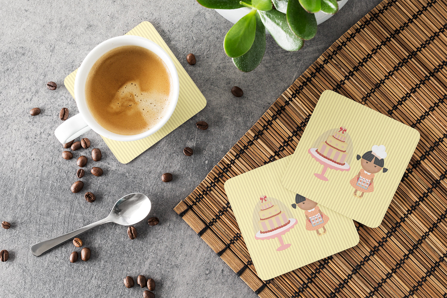 Cake Baker African American Yellow Foam Coaster BB7258FC
