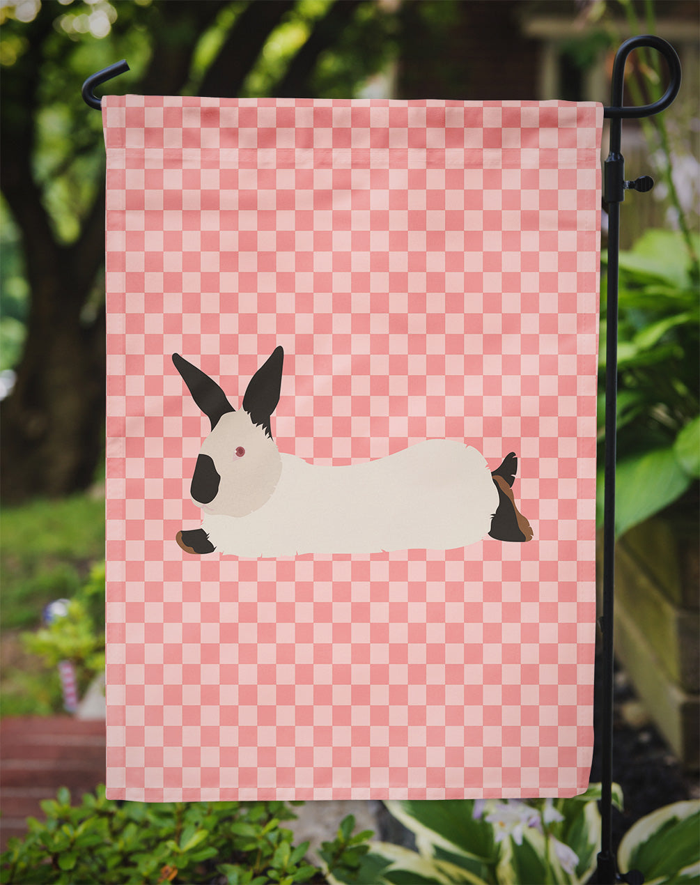 Decorate your space with our California White Rabbit artwork on a Garden Flag. Enhance the beauty of your garden, patio, or yard with Caroline's Treasures Decorative Garden Flag, proudly made in the USA. Crafted from two pieces of thick, double-sided polyester fabric, this 2-ply garden flag is designed to withstand various weather conditions, making it water-resistant and weatherproof. Featuring correctly readable words on both sides, this garden flag offers a delightful visual experience from any angle. With its heavier weight, it stands out among other garden flags, ensuring stability and durability even in wind, rain, and snow. Measuring approximately 11 1/4 inches by 15 1/2 inches, this flag allows you to personalize your outdoor decor. It comes with a 1 1/2-inch sleeve sewn in, allowing easy attachment to any standard garden flag stand or garden size porch hanger (sold separately). Make a statement in your outdoor space with Caroline's Treasures Decorative Garden Flag, a vibrant and high-quality flag that adds color and personality to your surroundings. Proudly made in the USA, it's a symbol of quality craftsmanship and attention to detail.
