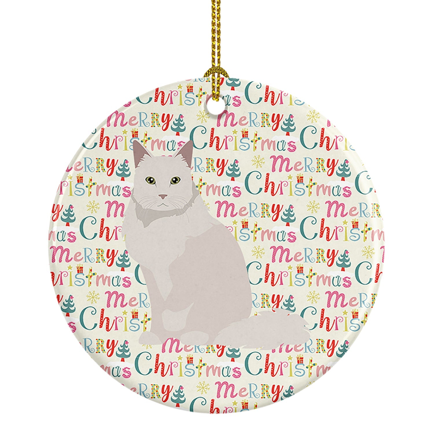Decorate your space with our Christmas Chantilly Tiffany Cat artwork on a Ornament. Add a touch of personalized charm to your Christmas tree this holiday season with our Ceramic Ornament. Measuring 2.8125 inches in diameter, this round porcelain ornament beautifully reflects your festive lights, enhancing your holiday decor. The gloss surface sets off the vibrant, full-color artwork contributed by one of our talented artists, bringing a pop of color and joy to your tree. This Ceramic Ornament doesn't stop at being merely decorative. The white back is designed for personalization. Write a heartfelt message, mark a special year, or inscribe a date with a paint pen or a permanent marker to create a treasured memento. Please ensure you allow any personalization to dry thoroughly before handling to maintain the pristine finish. Included with the ornament is a delicate gold cord for easy hanging. Made in the USA, this Ceramic Ornament makes an exceptional gift for a pet sitter, teacher, family member, or anyone you wish to share a little Christmas magic with. With its blend of style, charm, and personal touch, it's a meaningful addition to any Christmas tree.
