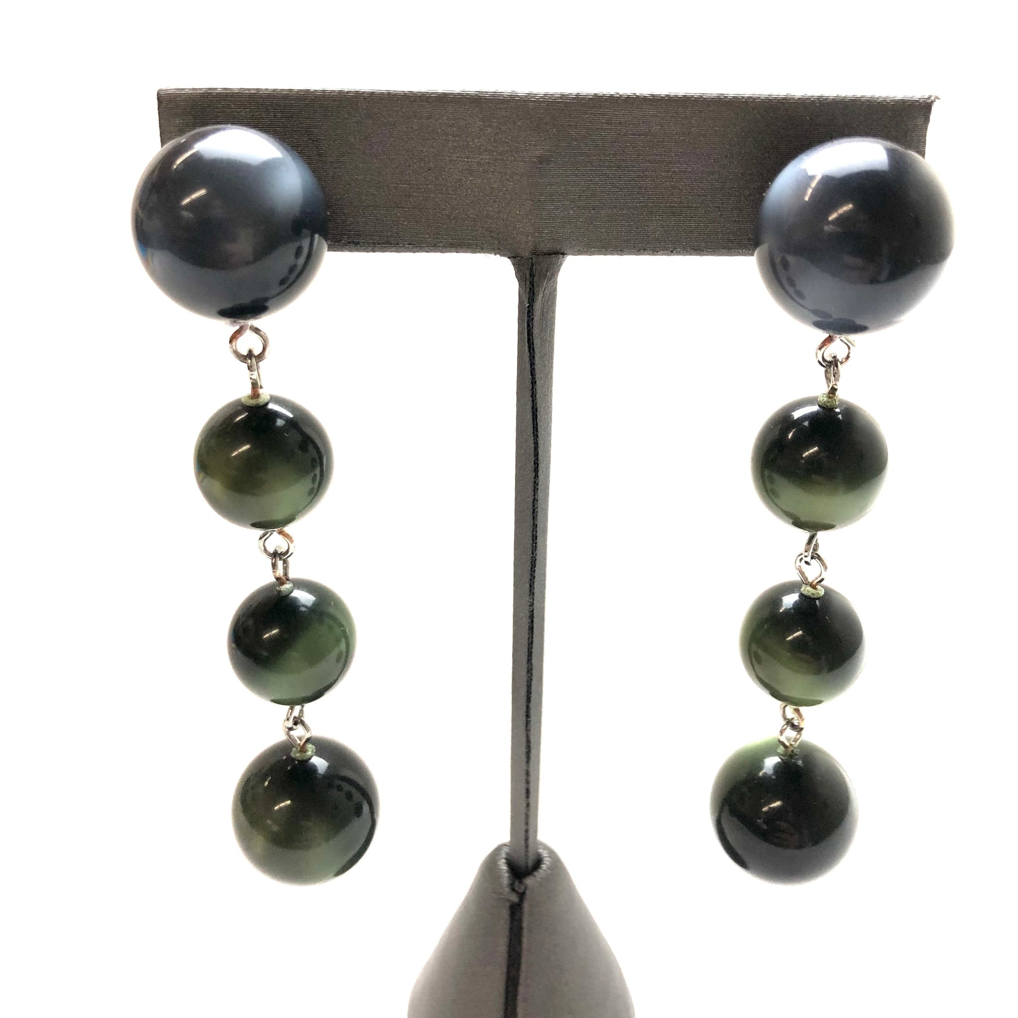 Charcoal & forest green with a retro moonglow finish. Quadruple round balls connected with steel wire creating retro fantastic statement earrings.