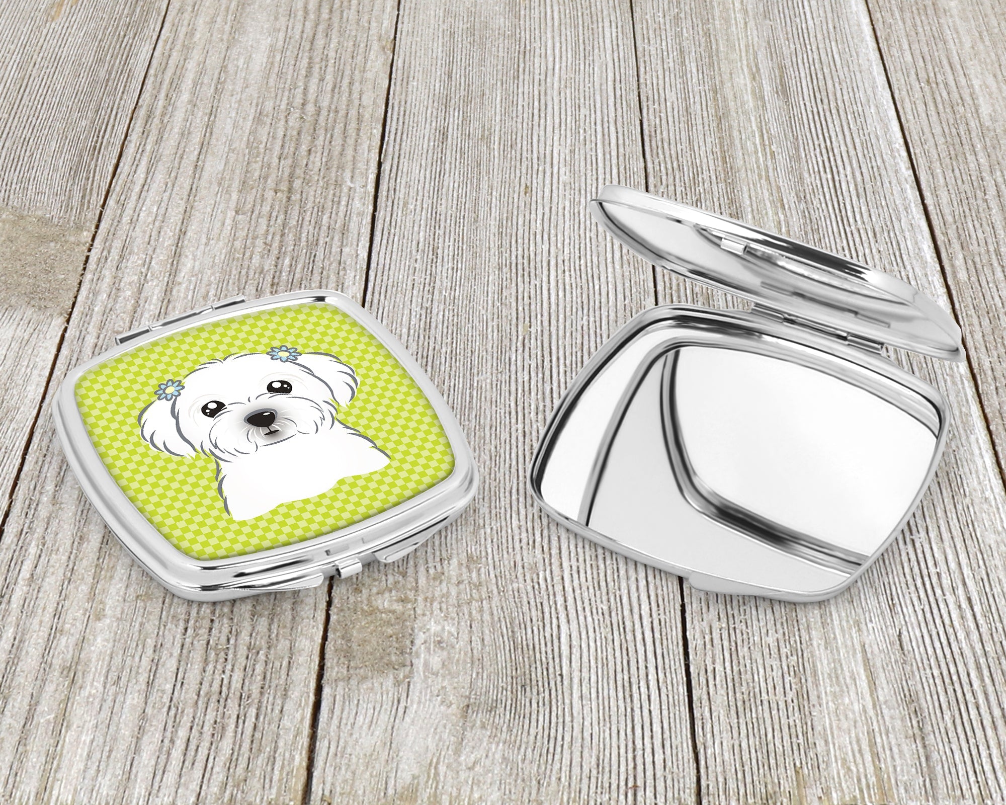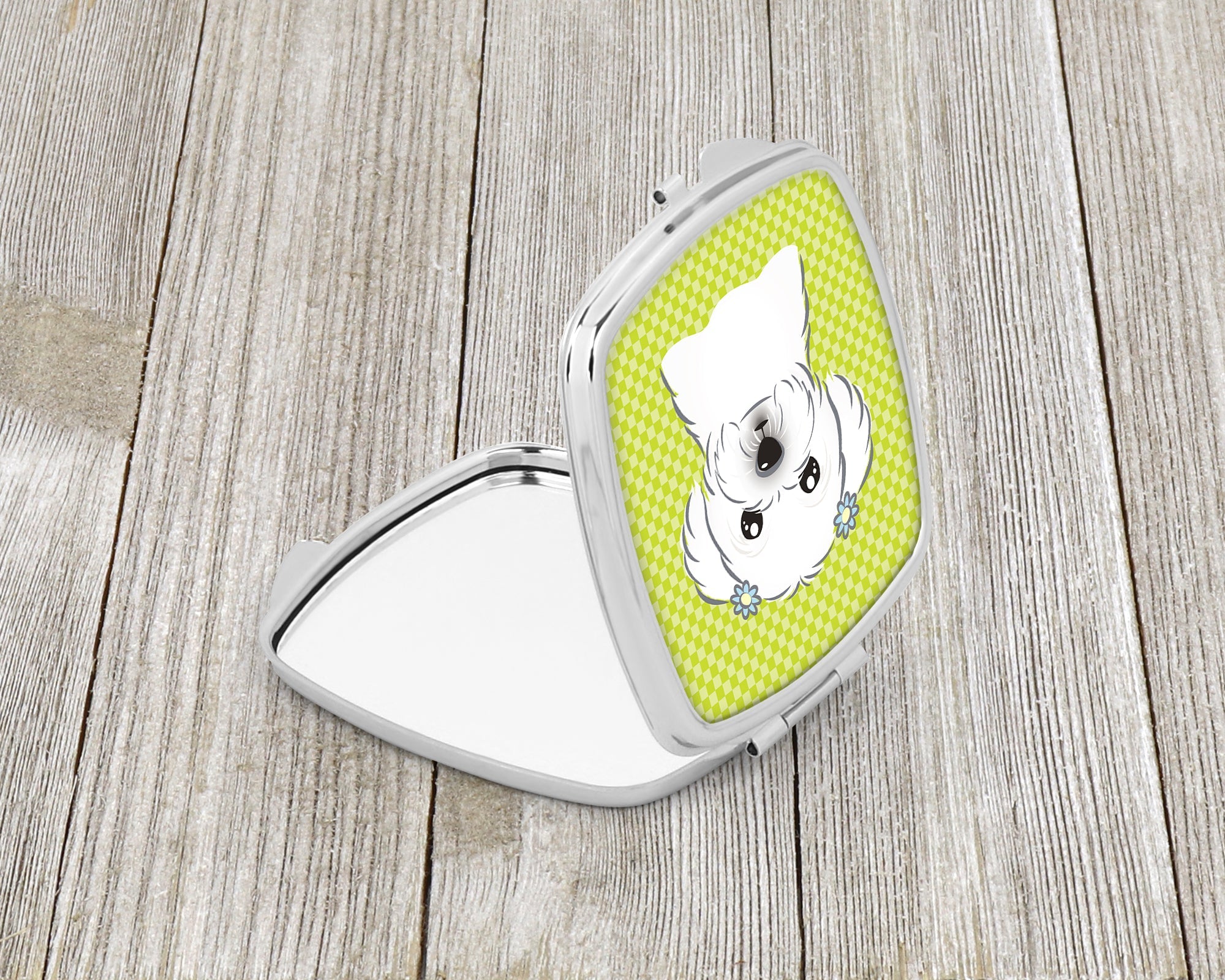 Checkerboard Lime Green Maltese Compact Mirror – Stylish Purse Mirror with Artistic Covers BB1270SCM