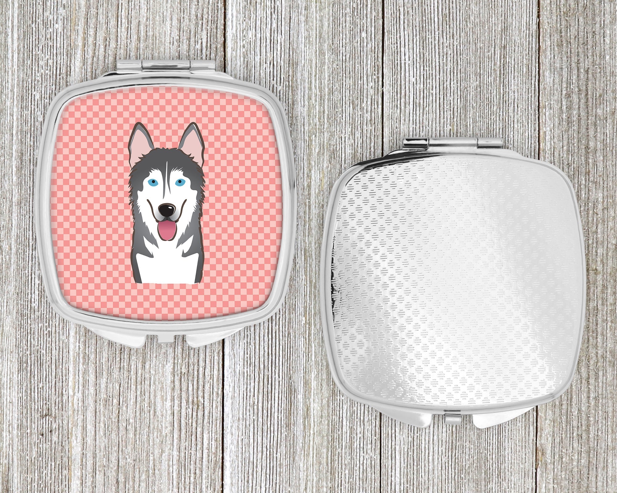Checkerboard Pink Alaskan Malamute Compact Mirror – Stylish Purse Mirror with Artistic Covers BB1218SCM