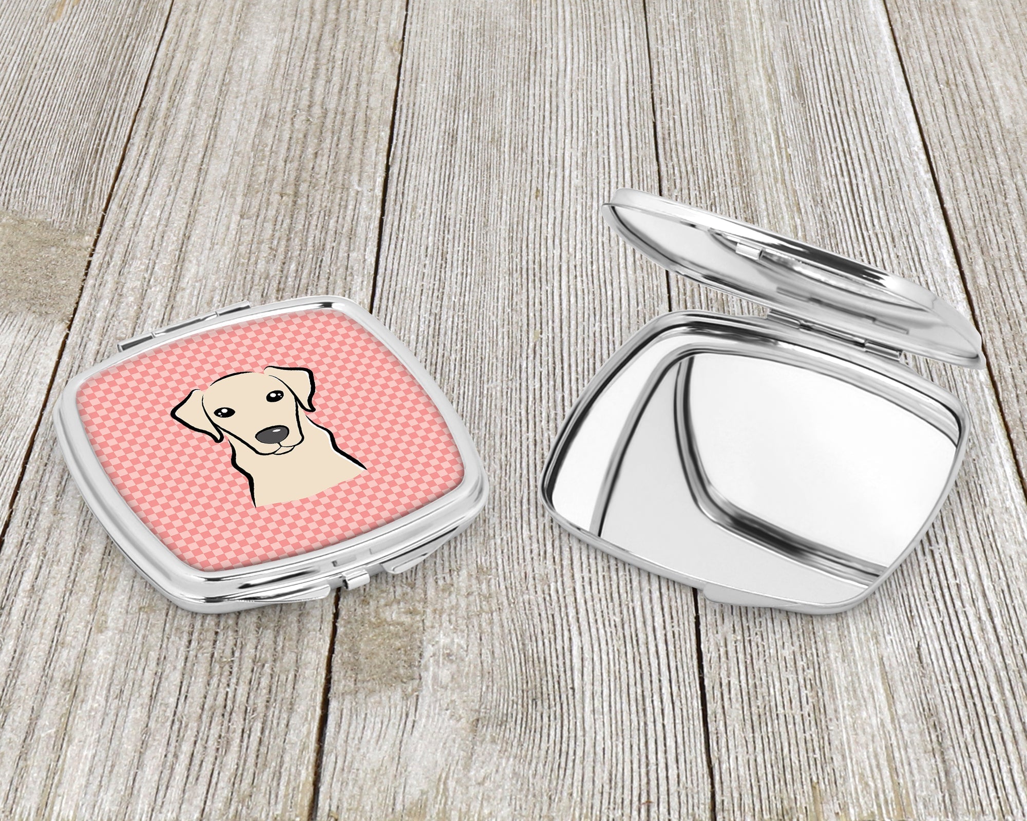 Checkerboard Pink Yellow Labrador Compact Mirror – Stylish Purse Mirror with Artistic Covers BB1222SCM