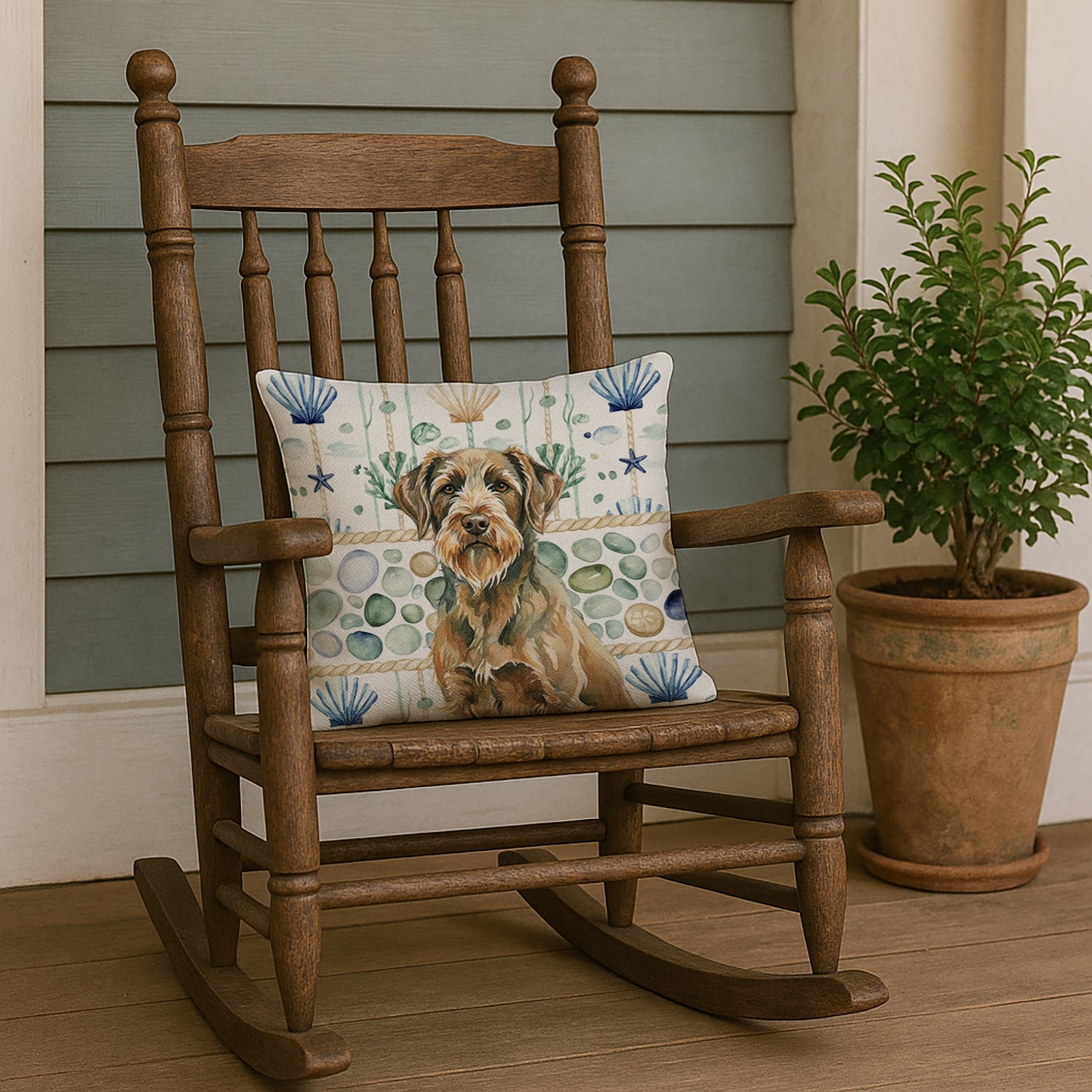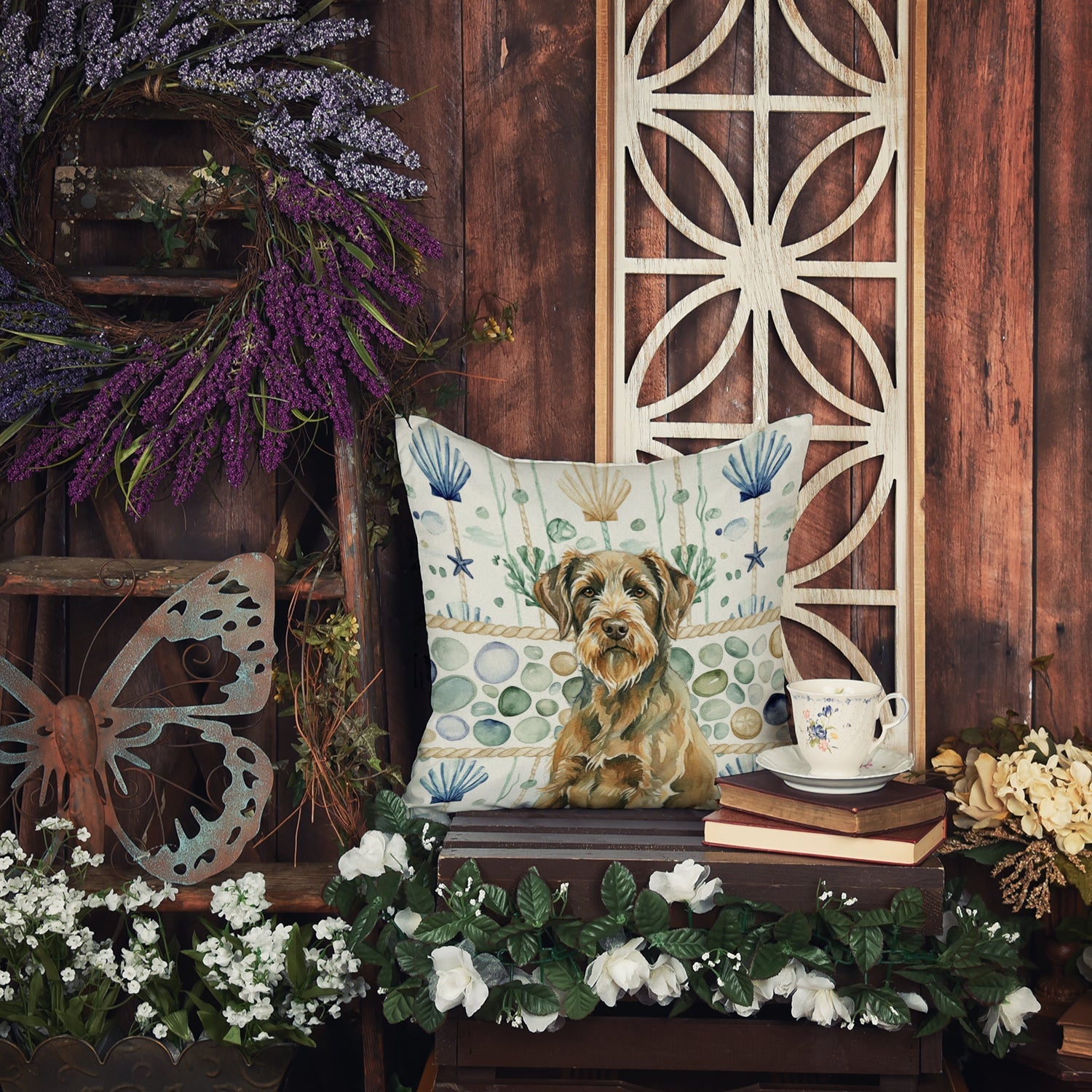 Throw Pillow featuring breed specific Wirehaired Pointing Griffon artwork. Revitalize your outdoor or indoor living space with Caroline's Treasures 18x18 Fabric Decorative Pillow. With a generously sized dimension of approximately 18 inches by 18 inches, this pillow makes a comfortable and aesthetic addition to any seating area. Made from a unique, water-resistant material developed by Caroline's Treasures, the pillow sham is 100% polyester fabric that's durable and ready to weather any condition. Its vibrant, full-color artwork will not fade over time as it is dyed with color-fast dyes. Whether you place it on your patio furniture, porch, veranda, or indoor couch, its soft canvas fabric ensures a cozy experience. The pillow is handcrafted in the United States, featuring a sham created from three pieces of fabric and a polyester insert for enduring shape and overstuffed comfort. Despite being robustly built to endure the outdoors, it is as soft and snug as your favorite indoor cushions. Please note, as all our pillows are handmade, sizes may vary slightly, adding to the charm of this unique decorative item.