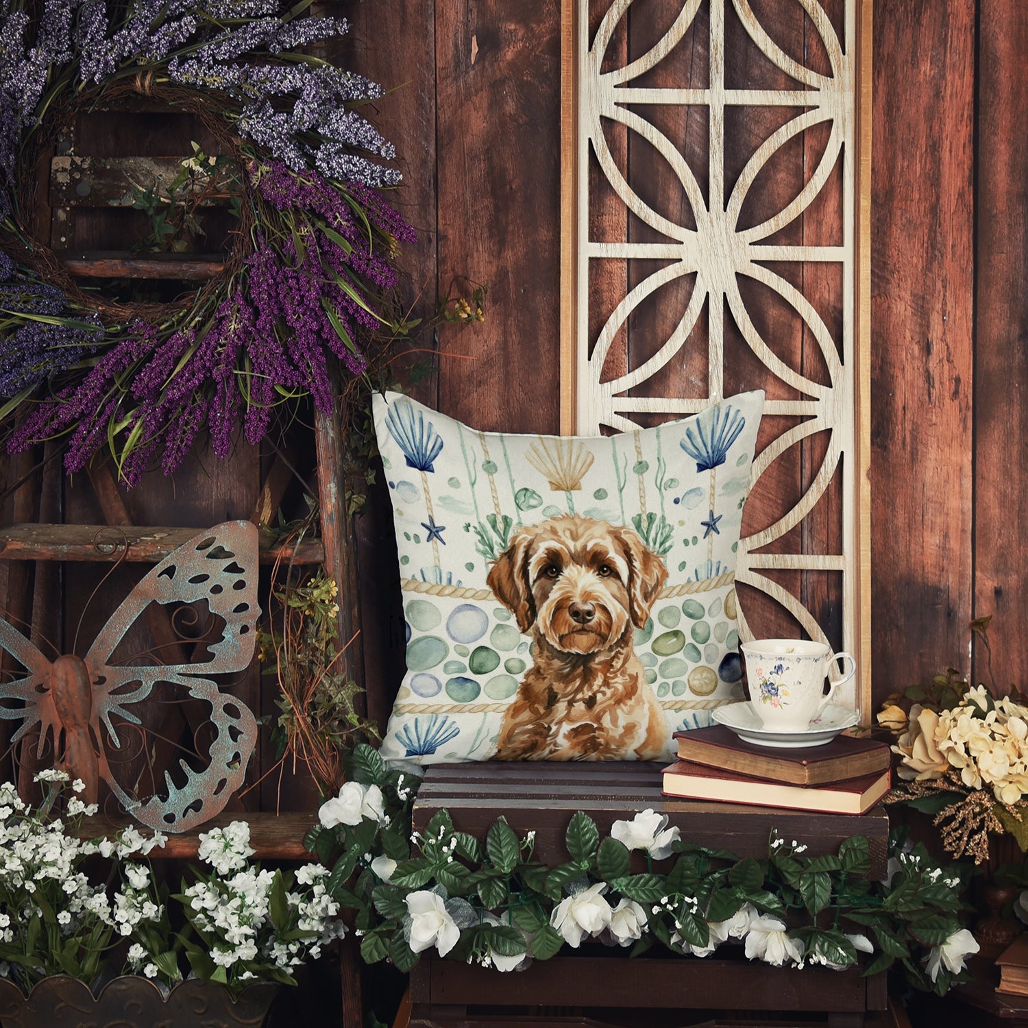 Throw Pillow featuring breed specific Labradoodle artwork. Add a touch of vibrancy and comfort to your outdoor seating with Caroline's Treasures Fabric Decorative Pillow. Measuring approximately 14 inches by 14 inches, this outdoor pillow is crafted to elevate the appeal of your patio furniture, infusing it with vivid color and artistic flair. The pillow includes a 100% Polyester Fabric sham filled with a quality pillow form to provide superior comfort. Innovatively made from our brand new material, specifically woven for its water resistance, this pillow is designed for durability. The soft canvas fabric offers versatility in use, fit for your indoor couch or your outdoor patio, porch, or veranda. The fabric is dyed with colorfast dyes built for resilience against weather conditions, ensuring the pillow retains its beauty over time. Constructed by sewing three fabric pieces to create a sham, the polyester insert is then nestled inside to form the pillow, resulting in an overstuffed pillow that maintains its shape. Both the sham and the pillow insert are proudly made in the United States. As the pillows are handcrafted, there may be minor variations in size, further enhancing their unique charm. Experience comfort in style with Caroline's Treasures Fabric Decorative Pillow.