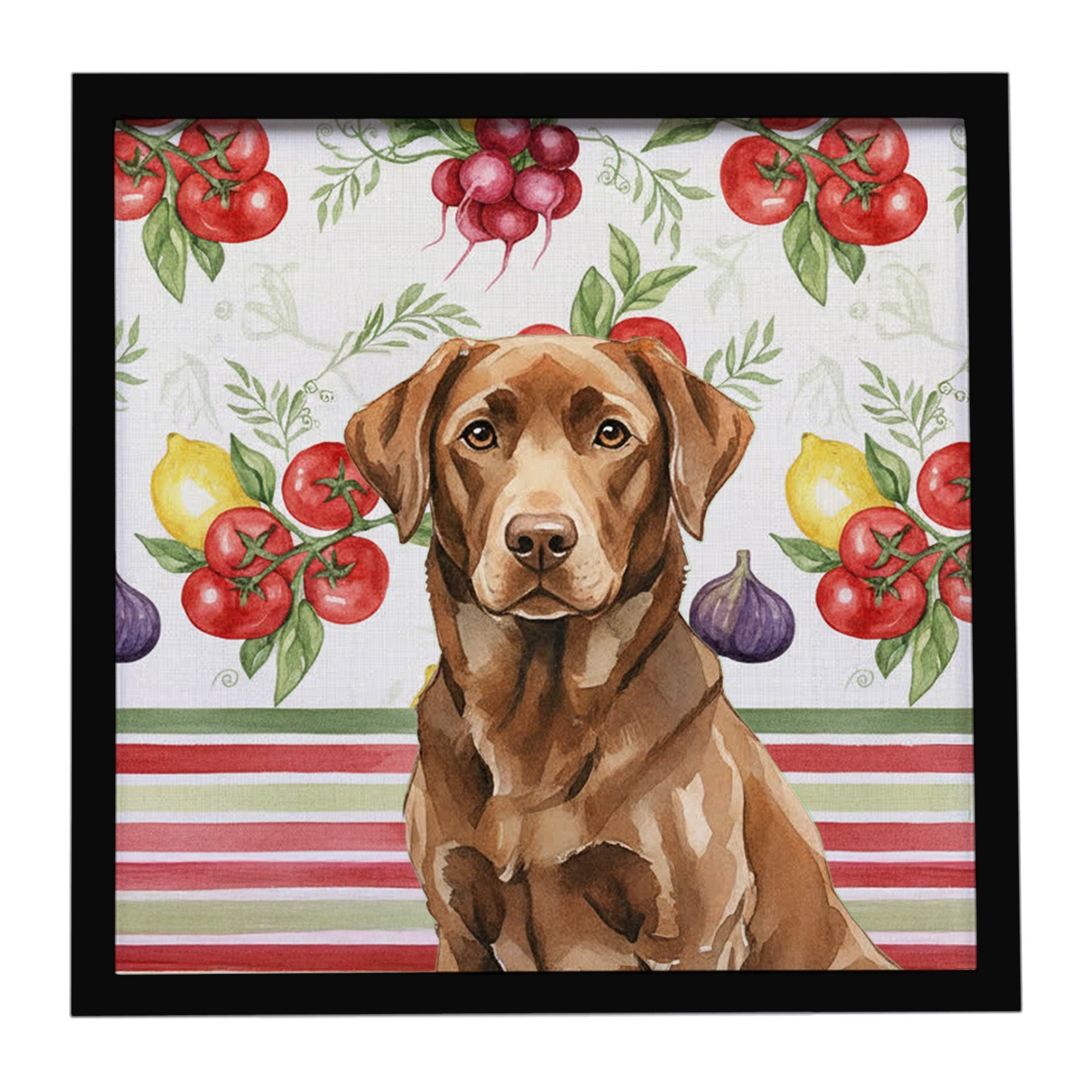 Chocolate Labrador Retriever Vegetables Framed Metal Print