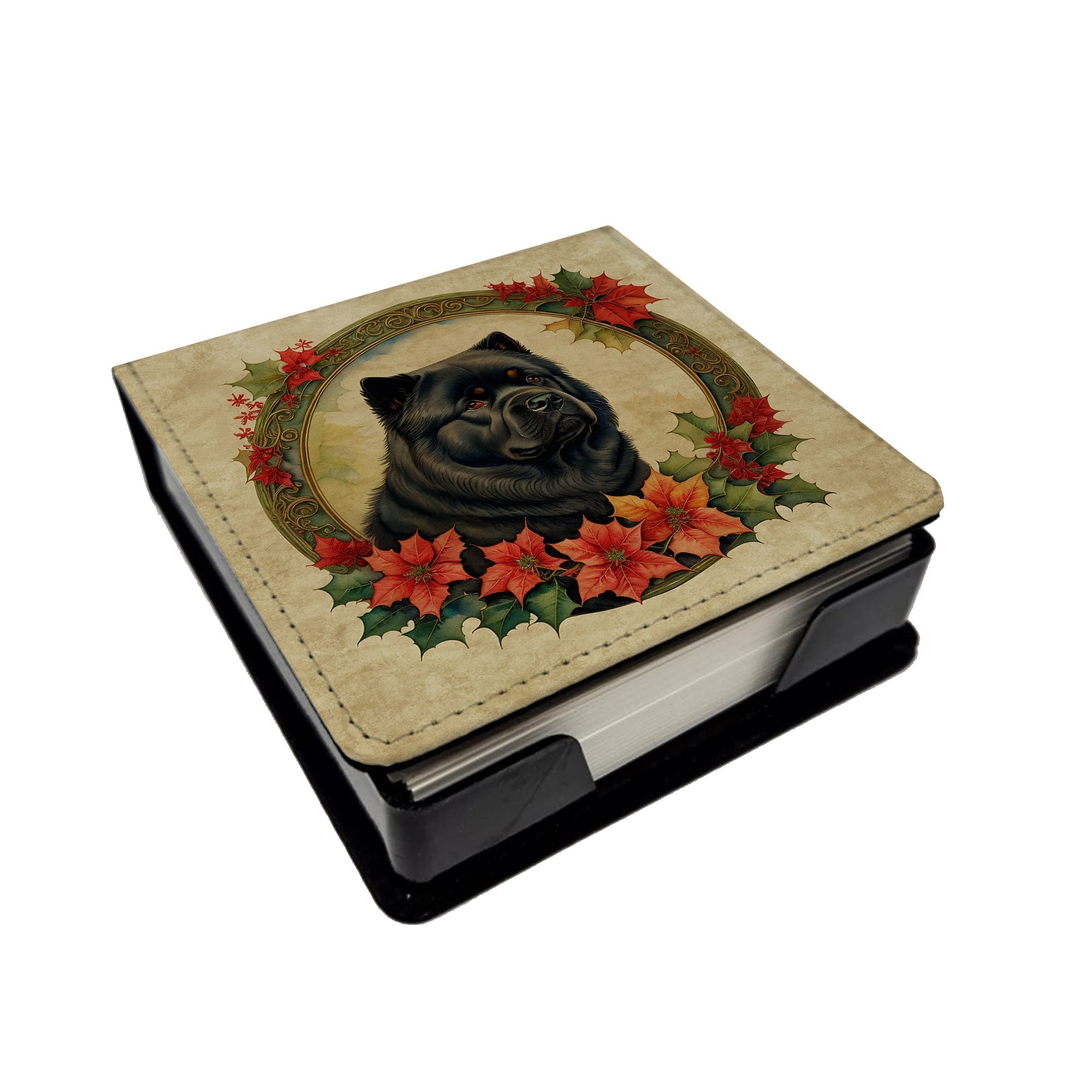 PU Leather Note Paper Holder featuring breed specific Chow Chow artwork. Celebrate Christmas with this Christmas Note Paper Holder. Elevate your workspace with this PU Leather Note Paper Holder, crafted to resemble luxurious leather without the use of animal products. Made from durable synthetic PU leather, it offers both a premium look and eco-friendly appeal. This note holder, compactly sized at 4.25 x 4.25 x 1.25 inches, includes about 160 sheets of 3.75 x 3.75-inch note paper—ideal for quick notes and reminders. An exclusive artist-designed cover makes each holder uniquely vibrant, adding a splash of color and personality to any desk or office. The discrete design keeps note paper hidden, maintaining a neat and organized workspace. Perfect as a gift or for personal use, this stylish holder is refillable with standard paper, ensuring long-lasting utility. A must-have for anyone seeking a sophisticated, artful touch to their workspace while supporting animal-friendly products. Add style, organization, and creativity to your everyday routine with this elegant note paper holder.