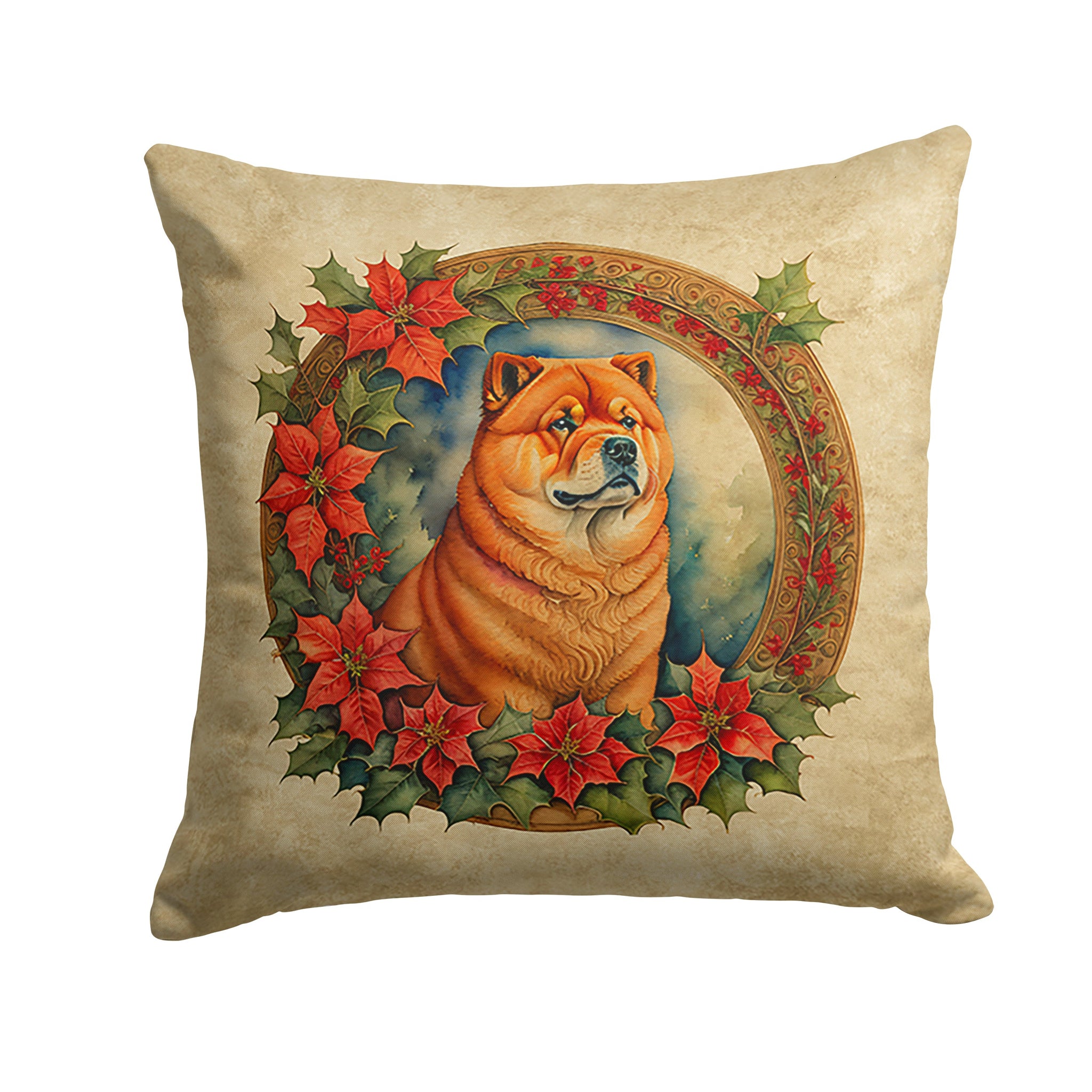 Decorate your space with our Christmas Chow Chow artwork on a Pillow. Bring a bit of Winter into your home with a Winter Pillow. Revitalize your outdoor or indoor living space with Caroline's Treasures 18x18 Fabric Decorative Pillow. With a generously sized dimension of approximately 18 inches by 18 inches, this pillow makes a comfortable and aesthetic addition to any seating area. Made from a unique, water-resistant material developed by Caroline's Treasures, the pillow sham is 100% polyester fabric that's durable and ready to weather any condition. Its vibrant, full-color artwork will not fade over time as it is dyed with color-fast dyes. Whether you place it on your patio furniture, porch, veranda, or indoor couch, its soft canvas fabric ensures a cozy experience. The pillow is handcrafted in the United States, featuring a sham created from three pieces of fabric and a polyester insert for enduring shape and overstuffed comfort. Despite being robustly built to endure the outdoors, it is as soft and snug as your favorite indoor cushions. Please note, as all our pillows are handmade, sizes may vary slightly, adding to the charm of this unique decorative item.