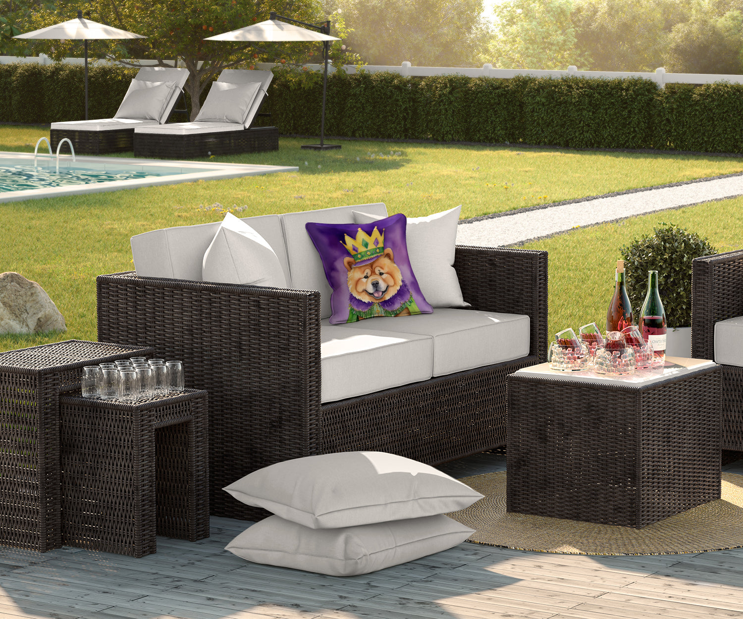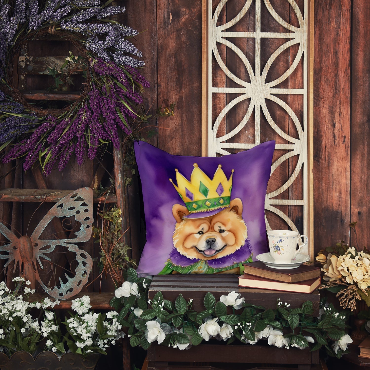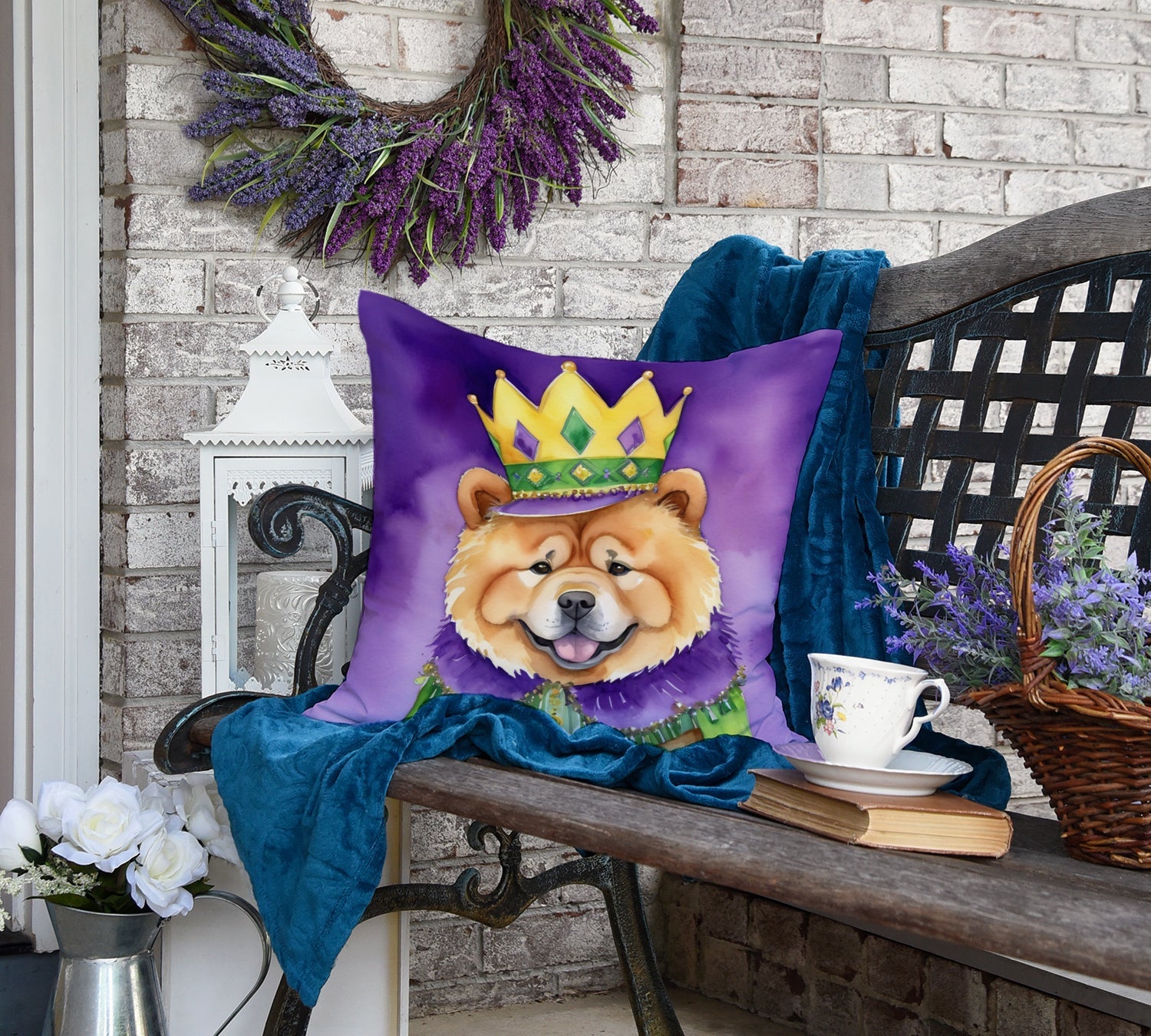 Throw Pillow featuring breed specific Chow Chow artwork. Celebrate Mardi Gras with this Mardi Gras Pillow. Revitalize your outdoor or indoor living space with Caroline's Treasures 18x18 Fabric Decorative Pillow. With a generously sized dimension of approximately 18 inches by 18 inches, this pillow makes a comfortable and aesthetic addition to any seating area. Made from a unique, water-resistant material developed by Caroline's Treasures, the pillow sham is 100% polyester fabric that's durable and ready to weather any condition. Its vibrant, full-color artwork will not fade over time as it is dyed with color-fast dyes. Whether you place it on your patio furniture, porch, veranda, or indoor couch, its soft canvas fabric ensures a cozy experience. The pillow is handcrafted in the United States, featuring a sham created from three pieces of fabric and a polyester insert for enduring shape and overstuffed comfort. Despite being robustly built to endure the outdoors, it is as soft and snug as your favorite indoor cushions. Please note, as all our pillows are handmade, sizes may vary slightly, adding to the charm of this unique decorative item.