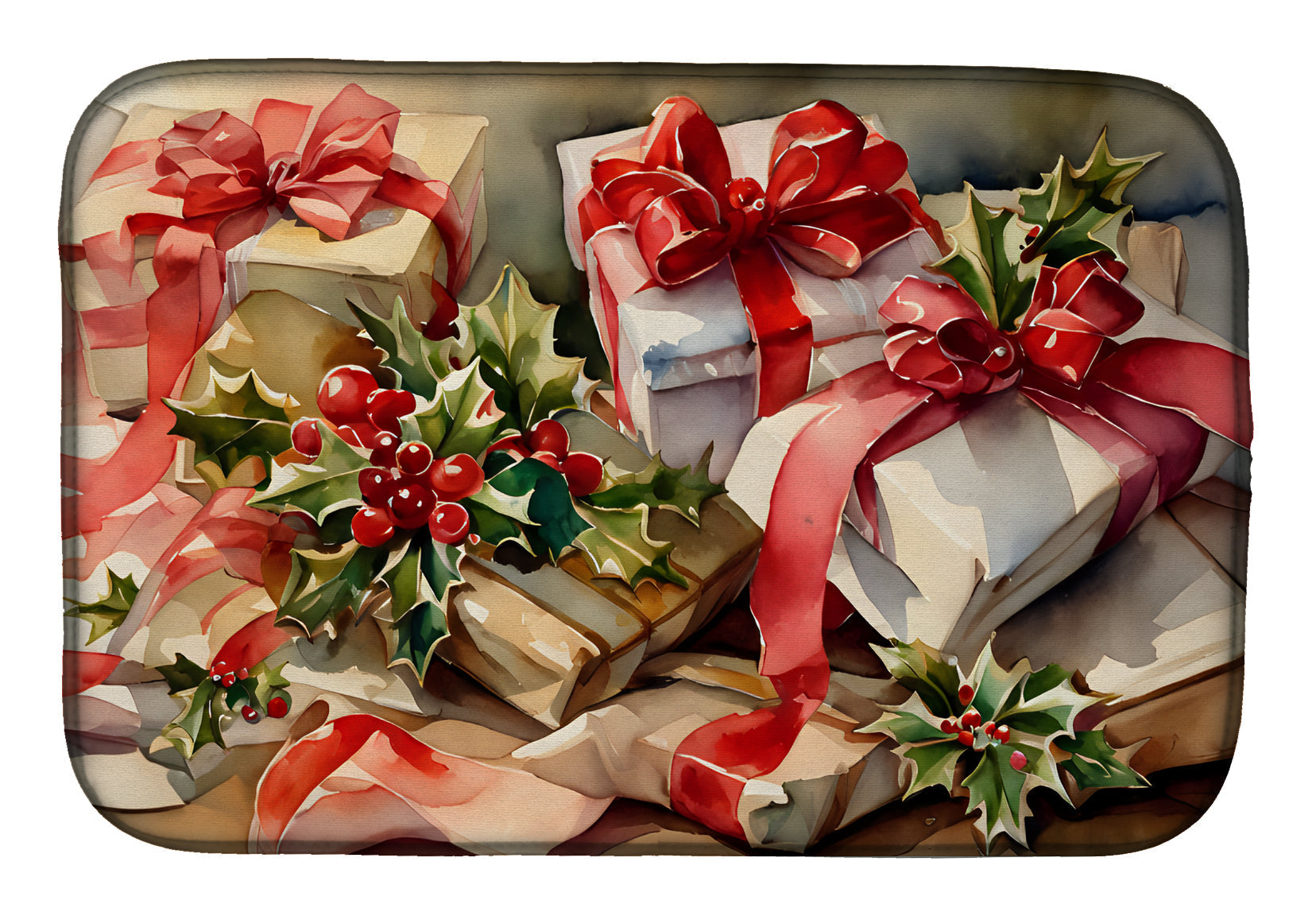 Celebrate Christmas with this Christmas Dish Drying Mat. Say goodbye to messy countertops and soggy dish towels with our innovative dish drying mat. Our high-quality dish drying pad is designed to keep your countertops dry while offering a stylish and efficient solution. Whether you're air drying dishes, glasses, stemware, silverware, pots, pans, bottles, or even fruits and vegetables, our dish mat is the perfect choice. The 14 inches x 22 inches size fits most counters and dish drying racks, and the non-slip design ensures stability. Made with water-absorbent polyester and a polyurethane foam insert, our dish drying mat is not only functional but also durable. It's machine washable and printed in the USA for long-lasting use. The beautiful artwork adds flair to your kitchen decor, making it a perfect housewarming gift or present for any occasion. Upgrade your kitchen experience with our absorbent and versatile dish drying mat.
