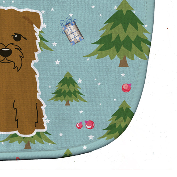 Decorate your space with our Christmas Glen of Imaal artwork on a Baby Bib. Cute and Functional. Dyed plush fabric baby bib with Velcro closure. Made of ultra-smooth micro-mink polyester that reverses to 100% cotton terry loops. Measures 10 inches x 13 inches, 0.8 oz. per piece. Edges are finished with binding. Machine washable and dry on low heat. Fade resistant and stain resistant. Top fabric gets even softer after the first wash.