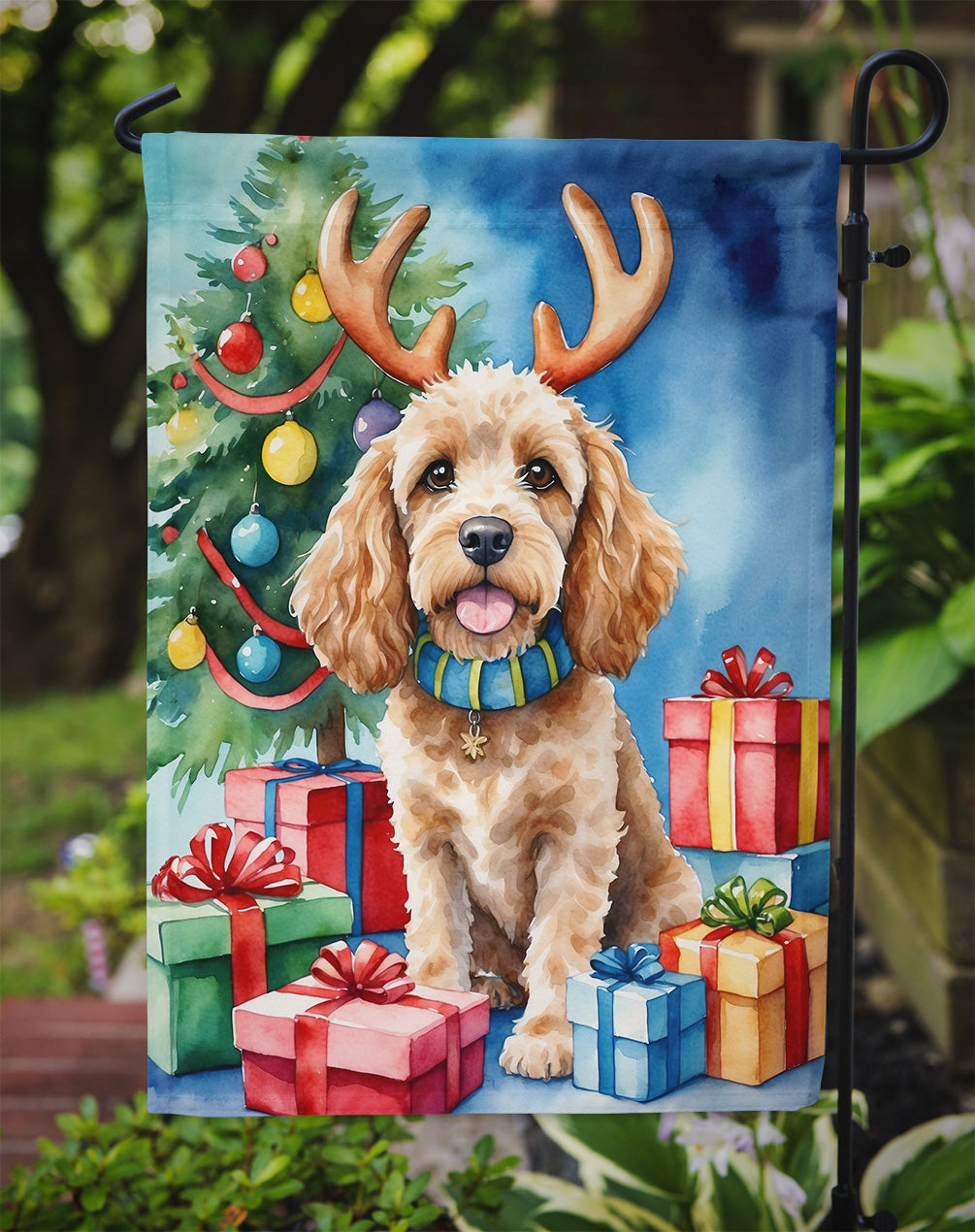 Garden Flag featuring breed specific Cockapoo artwork. Celebrate Christmas with this Christmas Garden Flag. Enhance the beauty of your garden, patio, or yard with Caroline's Treasures Decorative Garden Flag, proudly made in the USA. Crafted from two pieces of thick, double-sided polyester fabric, this 2-ply garden flag is designed to withstand various weather conditions, making it water-resistant and weatherproof. Featuring correctly readable words on both sides, this garden flag offers a delightful visual experience from any angle. With its heavier weight, it stands out among other garden flags, ensuring stability and durability even in wind, rain, and snow. Measuring approximately 11 1/4 inches by 15 1/2 inches, this flag allows you to personalize your outdoor decor. It comes with a 1 1/2-inch sleeve sewn in, allowing easy attachment to any standard garden flag stand or garden size porch hanger (sold separately). Make a statement in your outdoor space with Caroline's Treasures Decorative Garden Flag, a vibrant and high-quality flag that adds color and personality to your surroundings. Proudly made in the USA, it's a symbol of quality craftsmanship and attention to detail.