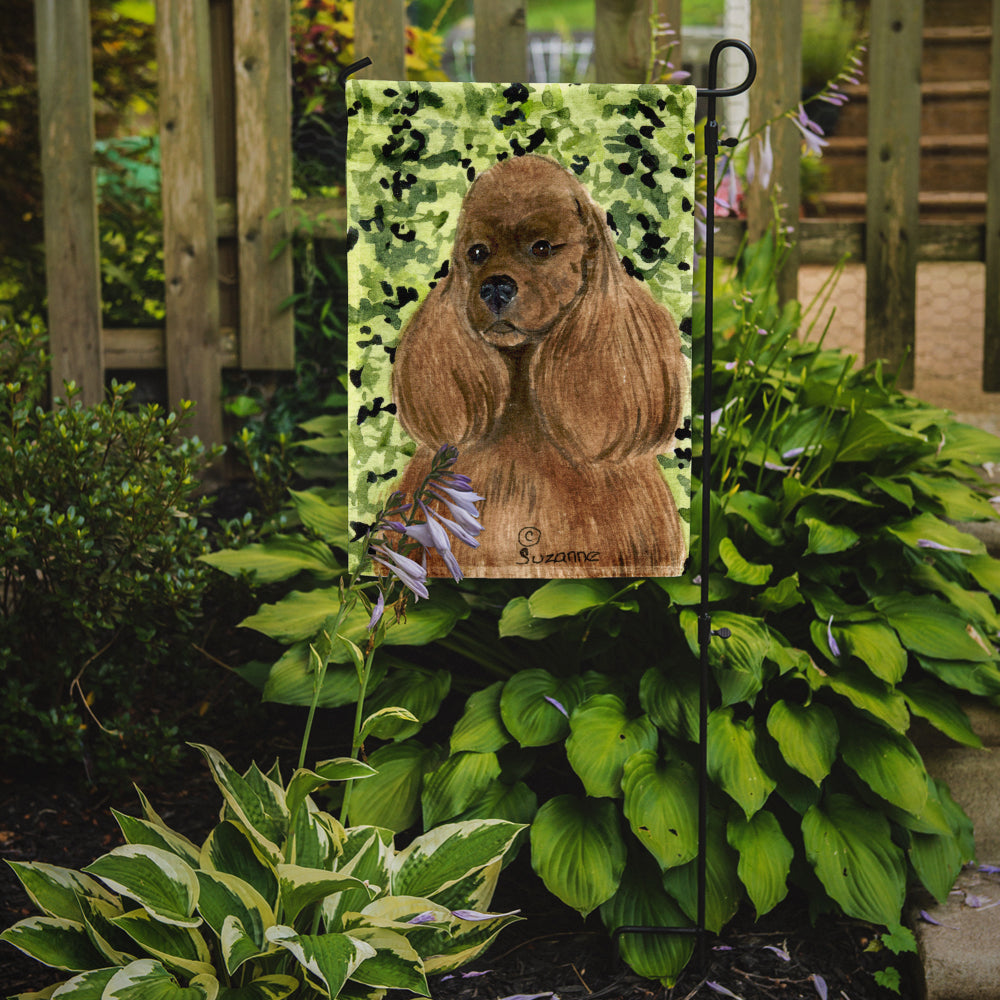 Decorate your space with our Cocker Spaniel artwork on a Garden Flag. Enhance the beauty of your garden, patio, or yard with Caroline's Treasures Decorative Garden Flag, proudly made in the USA. Crafted from two pieces of thick, double-sided polyester fabric, this 2-ply garden flag is designed to withstand various weather conditions, making it water-resistant and weatherproof. Featuring correctly readable words on both sides, this garden flag offers a delightful visual experience from any angle. With its heavier weight, it stands out among other garden flags, ensuring stability and durability even in wind, rain, and snow. Measuring approximately 11 1/4 inches by 15 1/2 inches, this flag allows you to personalize your outdoor decor. It comes with a 1 1/2-inch sleeve sewn in, allowing easy attachment to any standard garden flag stand or garden size porch hanger (sold separately). Make a statement in your outdoor space with Caroline's Treasures Decorative Garden Flag, a vibrant and high-quality flag that adds color and personality to your surroundings. Proudly made in the USA, it's a symbol of quality craftsmanship and attention to detail.