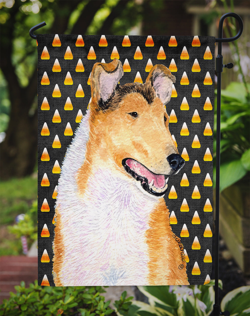 Decorate your space with our Halloween Collie artwork on a Garden Flag. Enhance the beauty of your garden, patio, or yard with Caroline's Treasures Decorative Garden Flag, proudly made in the USA. Crafted from two pieces of thick, double-sided polyester fabric, this 2-ply garden flag is designed to withstand various weather conditions, making it water-resistant and weatherproof. Featuring correctly readable words on both sides, this garden flag offers a delightful visual experience from any angle. With its heavier weight, it stands out among other garden flags, ensuring stability and durability even in wind, rain, and snow. Measuring approximately 11 1/4 inches by 15 1/2 inches, this flag allows you to personalize your outdoor decor. It comes with a 1 1/2-inch sleeve sewn in, allowing easy attachment to any standard garden flag stand or garden size porch hanger (sold separately). Make a statement in your outdoor space with Caroline's Treasures Decorative Garden Flag, a vibrant and high-quality flag that adds color and personality to your surroundings. Proudly made in the USA, it's a symbol of quality craftsmanship and attention to detail.