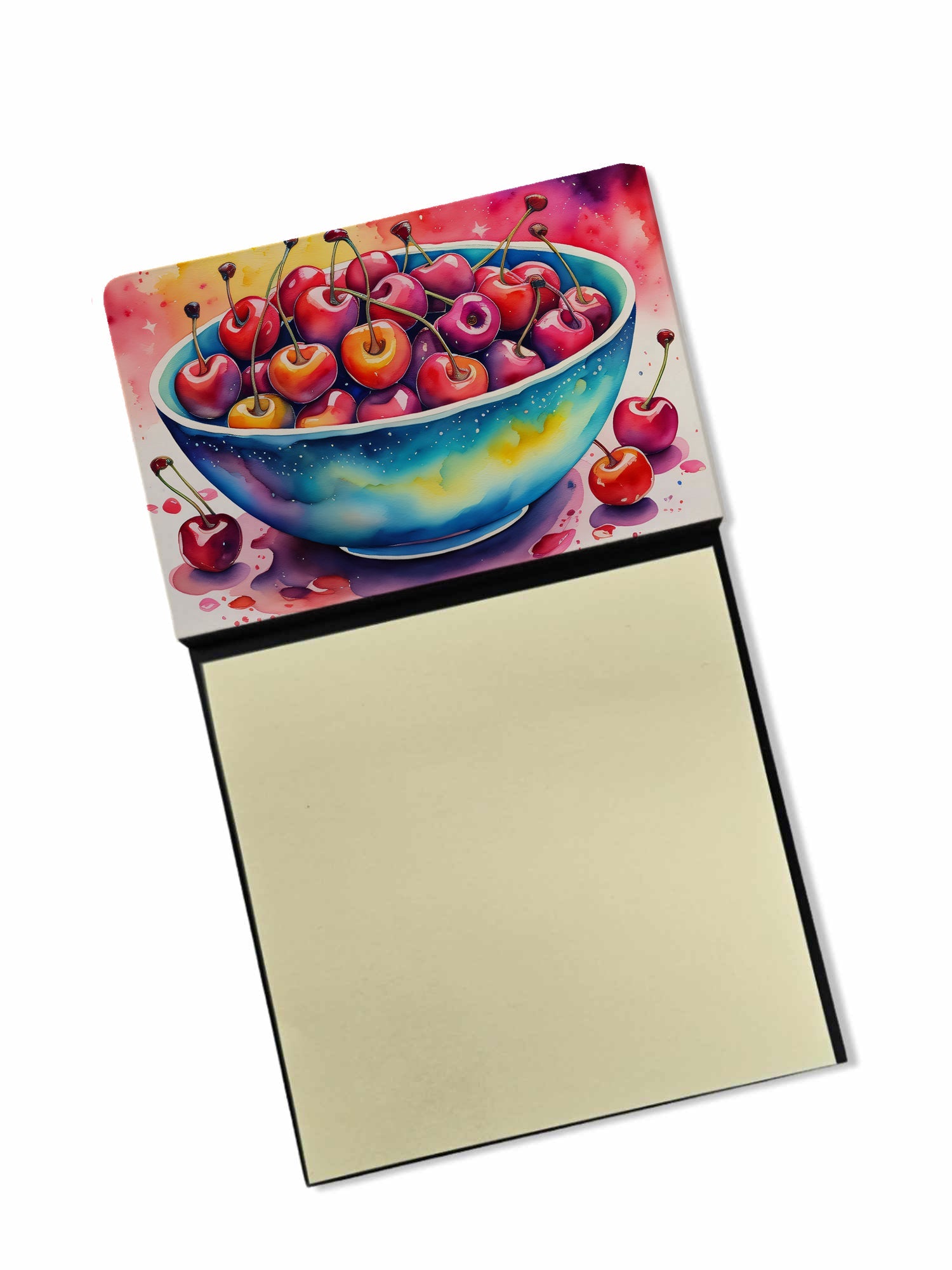 Decorate your space with our Cherries artwork on a Sticky Note Holder. Add a touch of creativity and flair to your desk with the Decorative Sticky Note Holder from Caroline's Treasures. This uniquely designed sticky note dispenser will not only keep your notes in one place but also add an artistic element to your workspace. The top of the holder features beautiful artwork that is sure to catch the eye. Crafted for convenience, this sticky note holder comes with a small pad of 3-inch x 3-inch sticky notes at the bottom. The holder is designed for easy refilling; simply remove the last sheet of a new sticky note pad and stick it onto the board. This feature ensures you will always have sticky notes at your disposal. This Sticky Note Holder makes a perfect gift. Be it for your colleagues at work, your Facebook friends, or even your dog groomer or hairdresser, this versatile product fits the bill. You can use it for making grocery lists, leaving notes for loved ones, or for jotting down important reminders. The bottom board is rigid and can be magnetized by adding a business card size magnet to the back (sold separately). This makes it even more versatile, allowing you to place it on a refrigerator or any other magnetic surface. With this Sticky Note Holder, you're not only organizing your notes, but also personalizing your space.