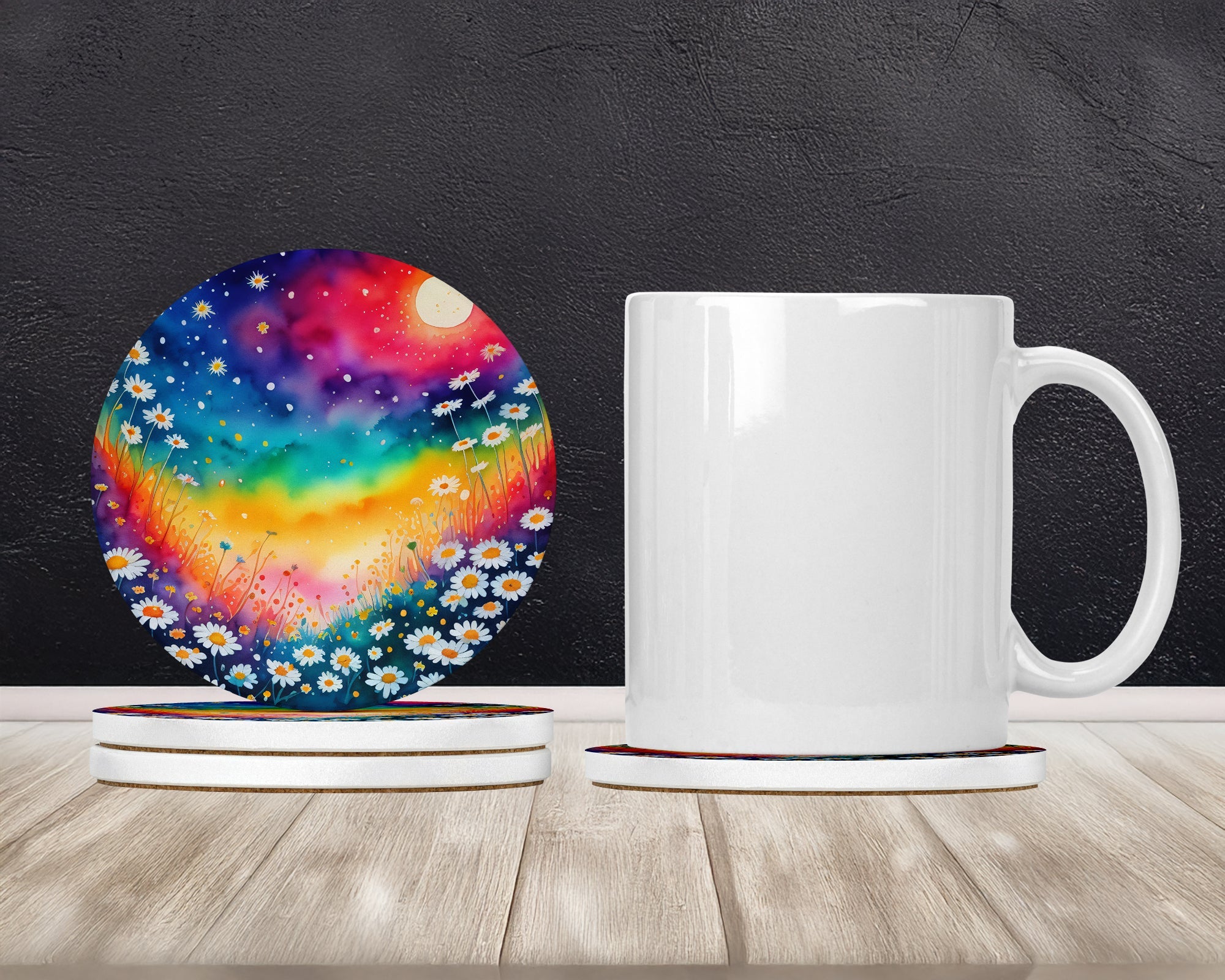 Large Sandstone Coasters Pack of 4 featuring breed specific Daisies artwork. Introducing Caroline's Treasures Large Sandstone Coasters Pack of 4, the perfect addition to your home decor. Each coaster measures nearly 4 inches and is made from absorbent sandstone with a cork backing. Designed and printed in the United States, these coasters feature artwork from Caroline's Treasures' talented artists. Protect your countertops and tables from hot and cold drink condensation with these absorbent coasters. They efficiently absorb moisture, ensuring your surfaces stay dry and clean. Choose from a wide range of designs to update and enhance your decor or give them as a thoughtful gift for any occasion. Cleaning is a breeze—simply wipe the coaster with a damp towel to remove any spills or stains. Each set comes in a brown gift box, making it ready to be wrapped for that special person in your life. These absorbent sandstone coasters also make an excellent housewarming gift, providing both practicality and style. Celebrate birthdays, Mother's Day, Father's Day, Thanksgiving, Christmas, Teacher's Appreciation Day, or simply show someone you care with these versatile and charming coasters. Caroline's Treasures Large Sandstone Coasters Pack of 4 is the perfect happy gift for any occasion.
