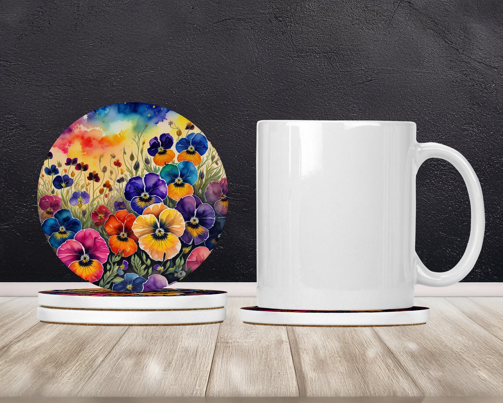 Large Sandstone Coasters Pack of 4 featuring breed specific Pansies artwork. Introducing Caroline's Treasures Large Sandstone Coasters Pack of 4, the perfect addition to your home decor. Each coaster measures nearly 4 inches and is made from absorbent sandstone with a cork backing. Designed and printed in the United States, these coasters feature artwork from Caroline's Treasures' talented artists. Protect your countertops and tables from hot and cold drink condensation with these absorbent coasters. They efficiently absorb moisture, ensuring your surfaces stay dry and clean. Choose from a wide range of designs to update and enhance your decor or give them as a thoughtful gift for any occasion. Cleaning is a breeze—simply wipe the coaster with a damp towel to remove any spills or stains. Each set comes in a brown gift box, making it ready to be wrapped for that special person in your life. These absorbent sandstone coasters also make an excellent housewarming gift, providing both practicality and style. Celebrate birthdays, Mother's Day, Father's Day, Thanksgiving, Christmas, Teacher's Appreciation Day, or simply show someone you care with these versatile and charming coasters. Caroline's Treasures Large Sandstone Coasters Pack of 4 is the perfect happy gift for any occasion.