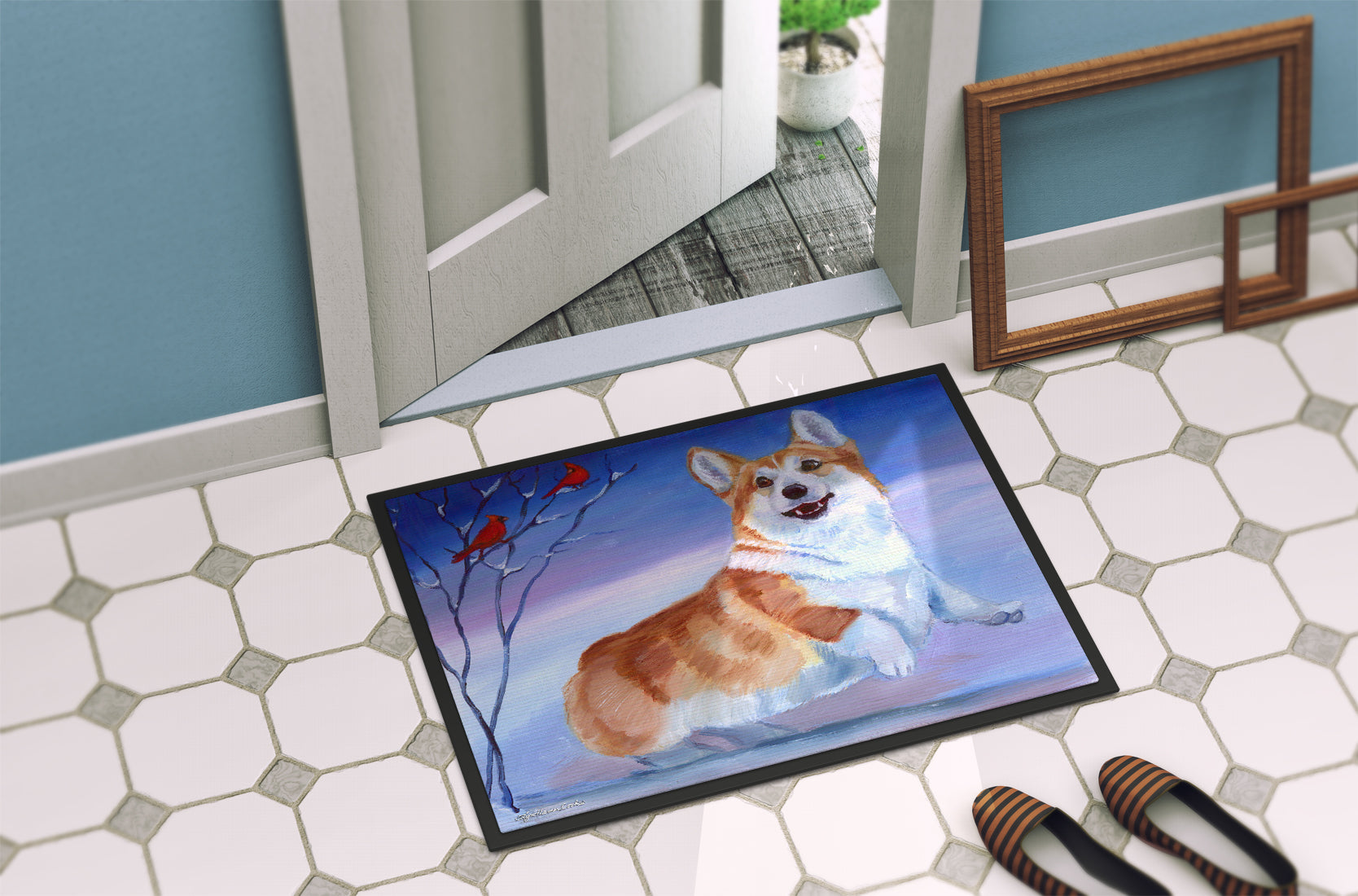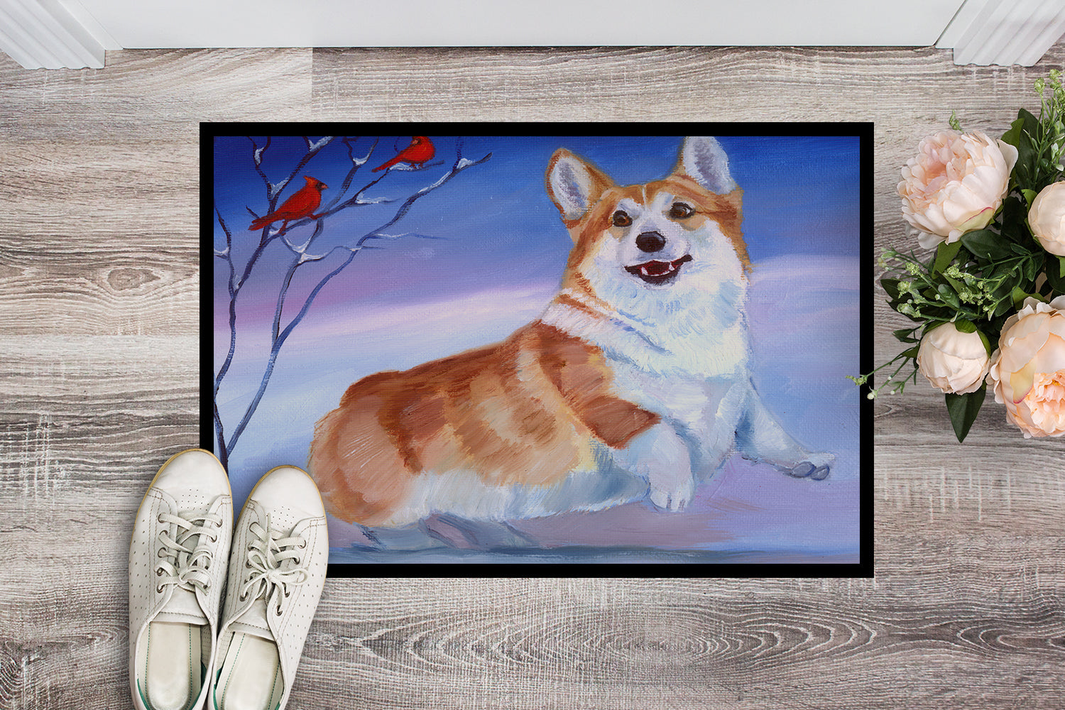 Decorate your space with our Corgi artwork on a Doormat. Welcome your guests in style with our Artwork Door Mat, designed to withstand almost any weather condition. This mat, measuring approximately 18 by 27 inches, is held together by durable black binding tape. Its top layer, composed of polyester felt, is dyed with the eye-catching image you see on the mat. A few layers below provide the mat with stability, while its rubber bottom is stamped to help prevent slipping and ensures safety. Our mat works wonderfully as both an indoor or outdoor door mat. For cleaning, simply hose it off with water or use a power washer - no need for any cleaner that produces suds. Avoid scrubbing with a brush, instead, opt for the vacuum on floor setting. Designed manufactured and printed in the USA, this mat is a perfect addition to your porch, outdoor kitchen, entryway, or any indoor space. Its unique design makes it a charming decorative rug that greets your guests and adds a stylish touch to your home decor.