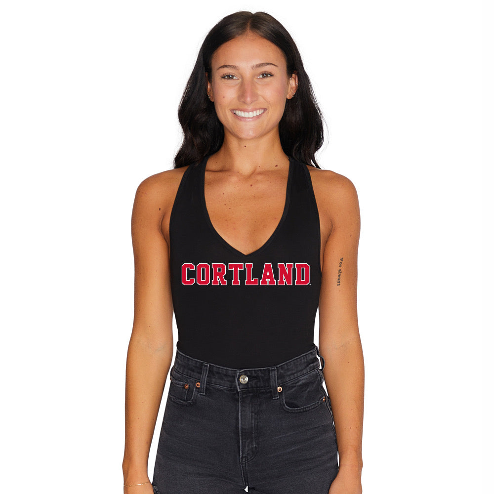 This super flattering Cortland Black Bodysuit is perfect for college game dayOur Cortland Black Bodysuit's soft fabric makes it the most comfortable sweatshirt to wear anytime.