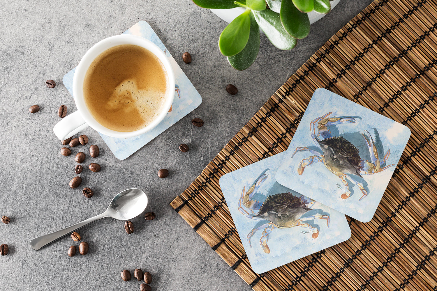 Crab Coasters - Set of 4 Lightweight Foam, Absorbent Drink Coasters
