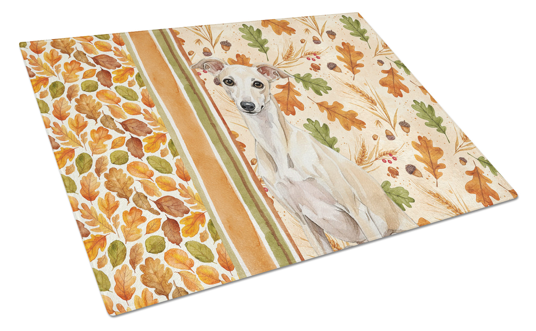 Glass Cutting Board featuring breed specific Italian Greyhound artwork. Celebrate Thanksgiving with this Thanksgiving Cutting Board. Introduce your kitchen to the vibrant, large Decorative Glass Cutting Board from Caroline's Treasures. Crafted from resilient tempered glass, this board is not only a utilitarian necessity but also a colorful art piece. With its generous dimensions of 15 inches in height and 12 inches in length, it offers ample space for all your cutting needs. Every piece showcases captivating artwork from distinguished artists, bringing an aesthetic edge to your kitchen. Beyond its attractive design, this cutting board ensures your countertop stays pristine and unscathed, owing to its heat-resistant properties. Engineered with user convenience in mind, it features non-skid feet for stability, and rounded corners for additional safety. Its robust construction renders it virtually unbreakable, guaranteeing longevity. The board comes with protective feet bumpers, maintaining its position during use. This product is recommended to be hand washed only. Proudly printed and assembled in the United States, this cutting board exemplifies superior craftsmanship. With Caroline's Treasures' Decorative Glass Cutting Board, you're investing in a blend of functionality and artistic flair.