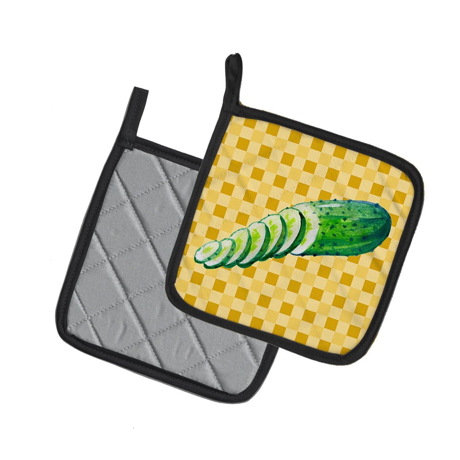 Cucumber on Basketweave Pot Holders - Set of 2 - Heat-Resistant Kitchen Essentials BB7199PTHD