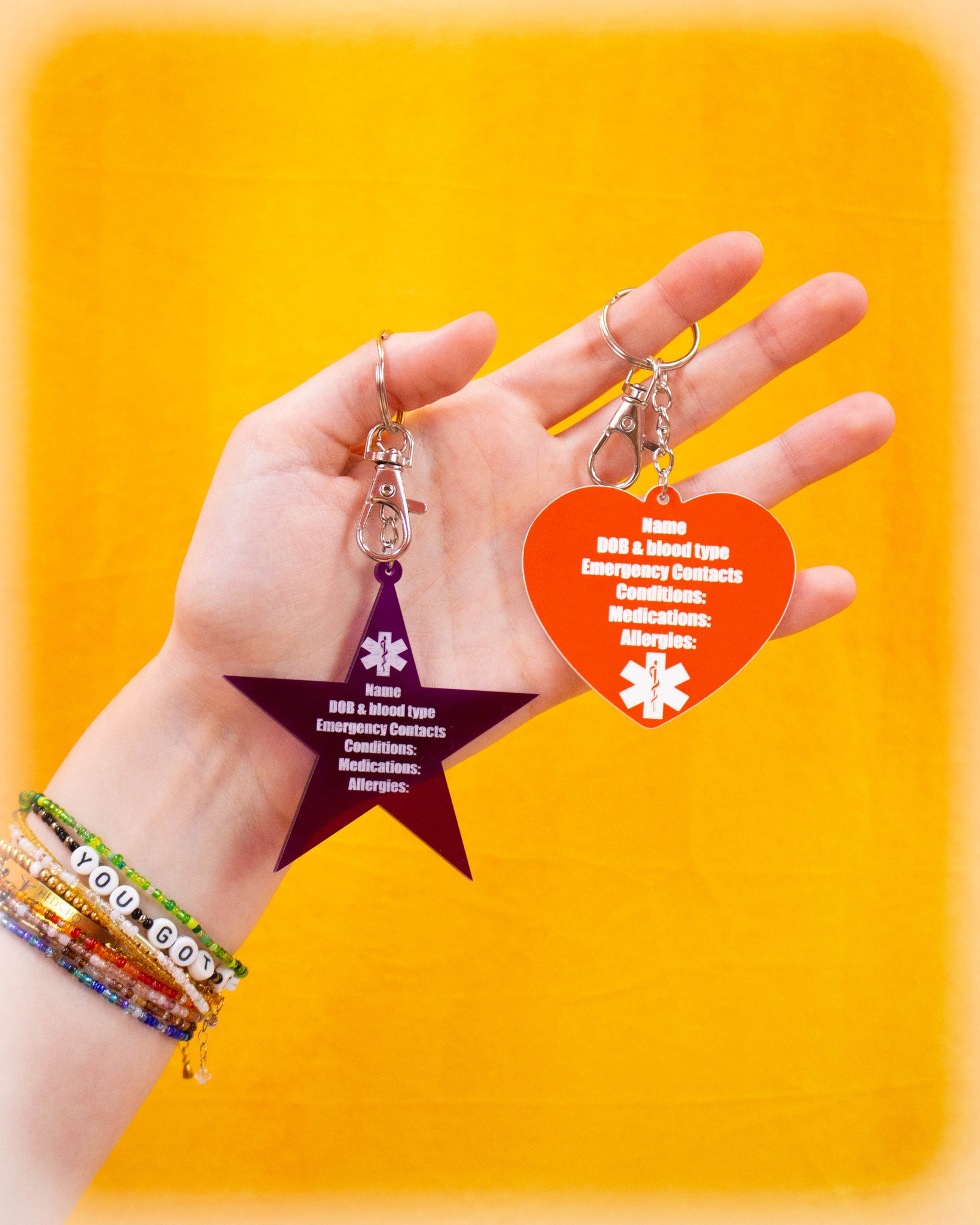 Get medical help fast with a customizable heart or star design that instantly gives first responders and bystanders the crucial information they need, saving precious seconds. Personalize with vital medical details, like: