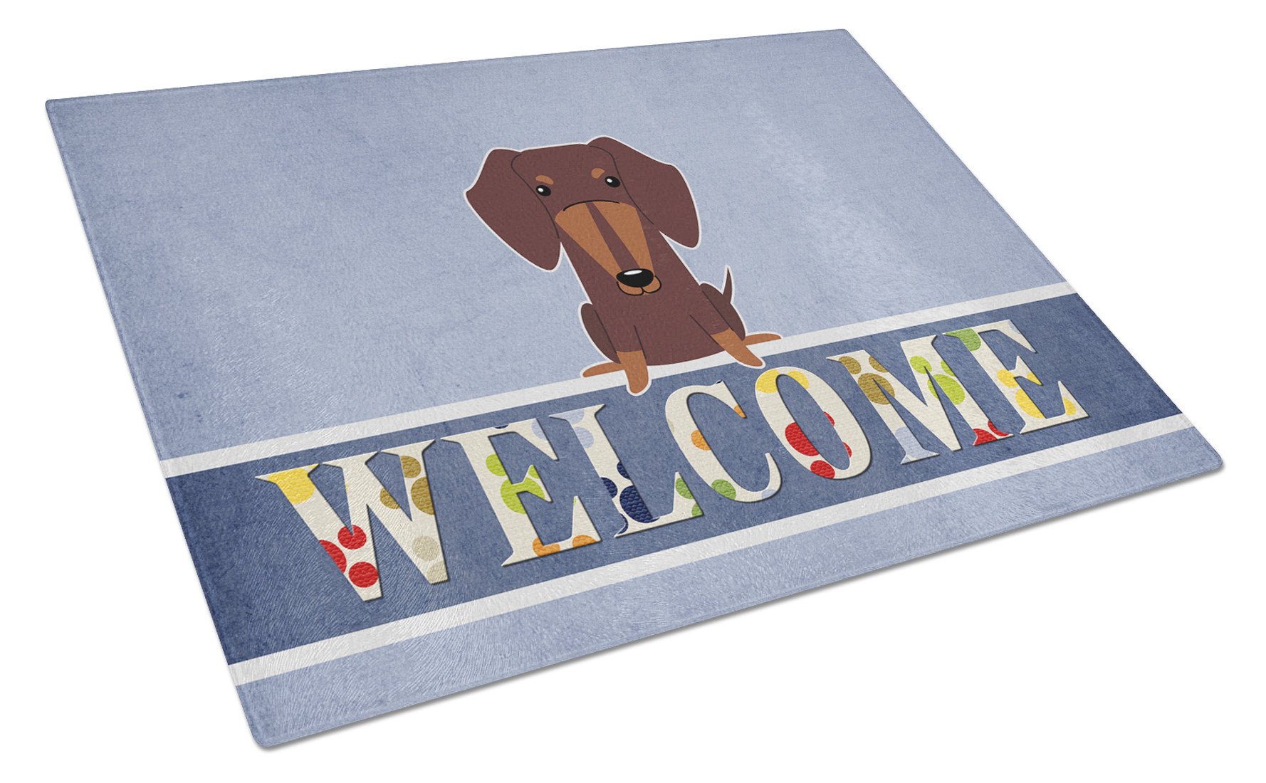 Dachshund Chocolate Welcome Glass Cutting Boards – Durable, Decorative Kitchen Art Large BB5712LCB