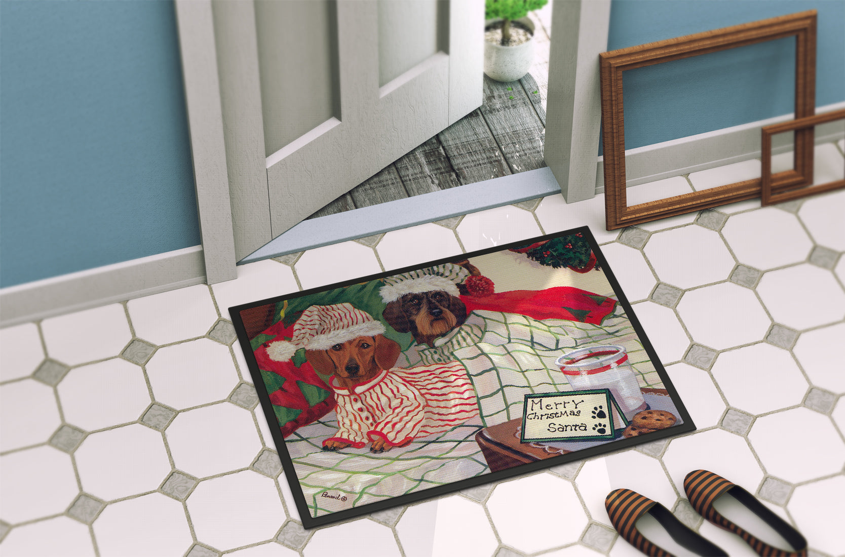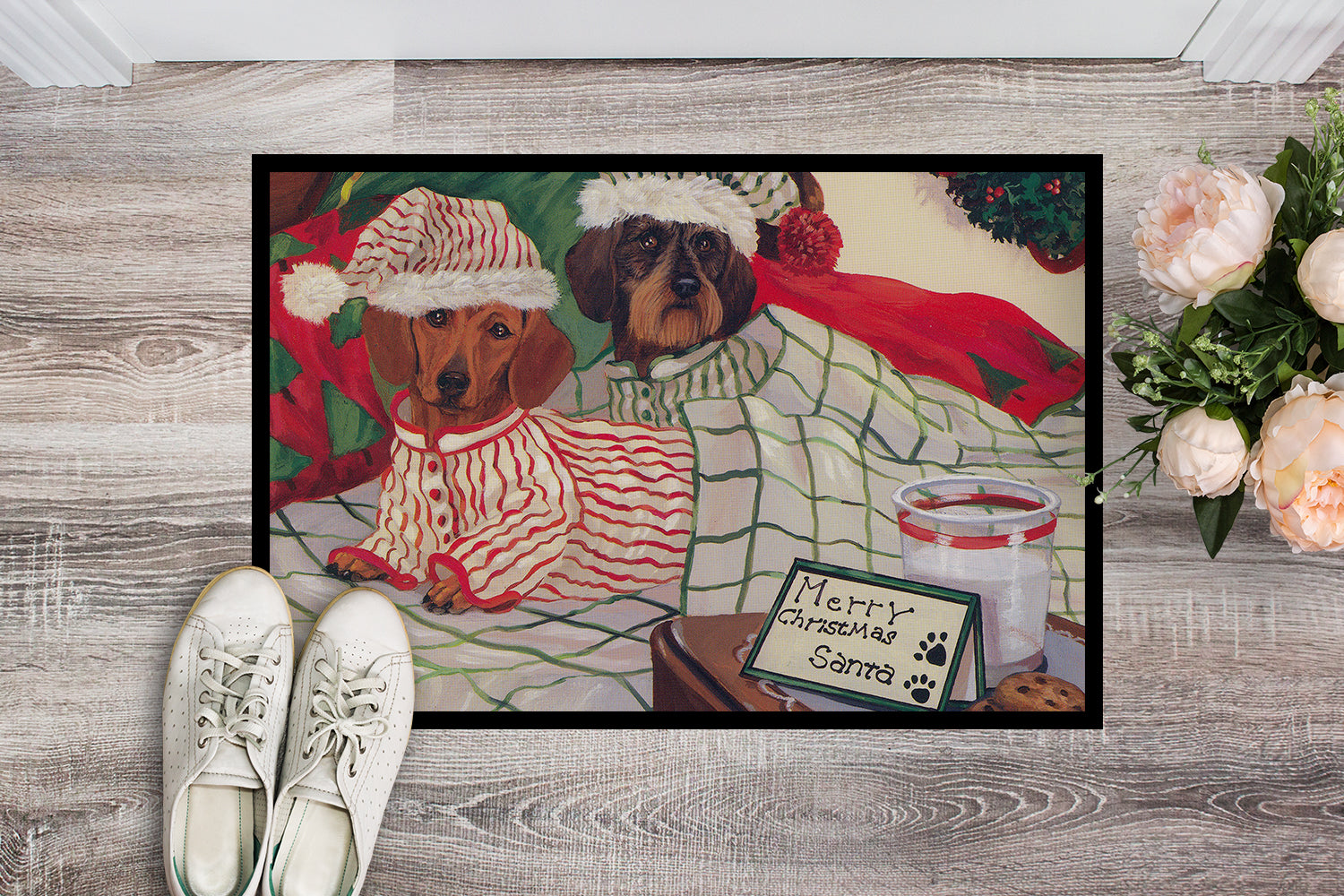 Dachshund Christmas Waiting for Santa Doormat - 18x27 Decorative Floor Mat – Indoor/Outdoor Rug with Artistic Flair PPP3260MAT