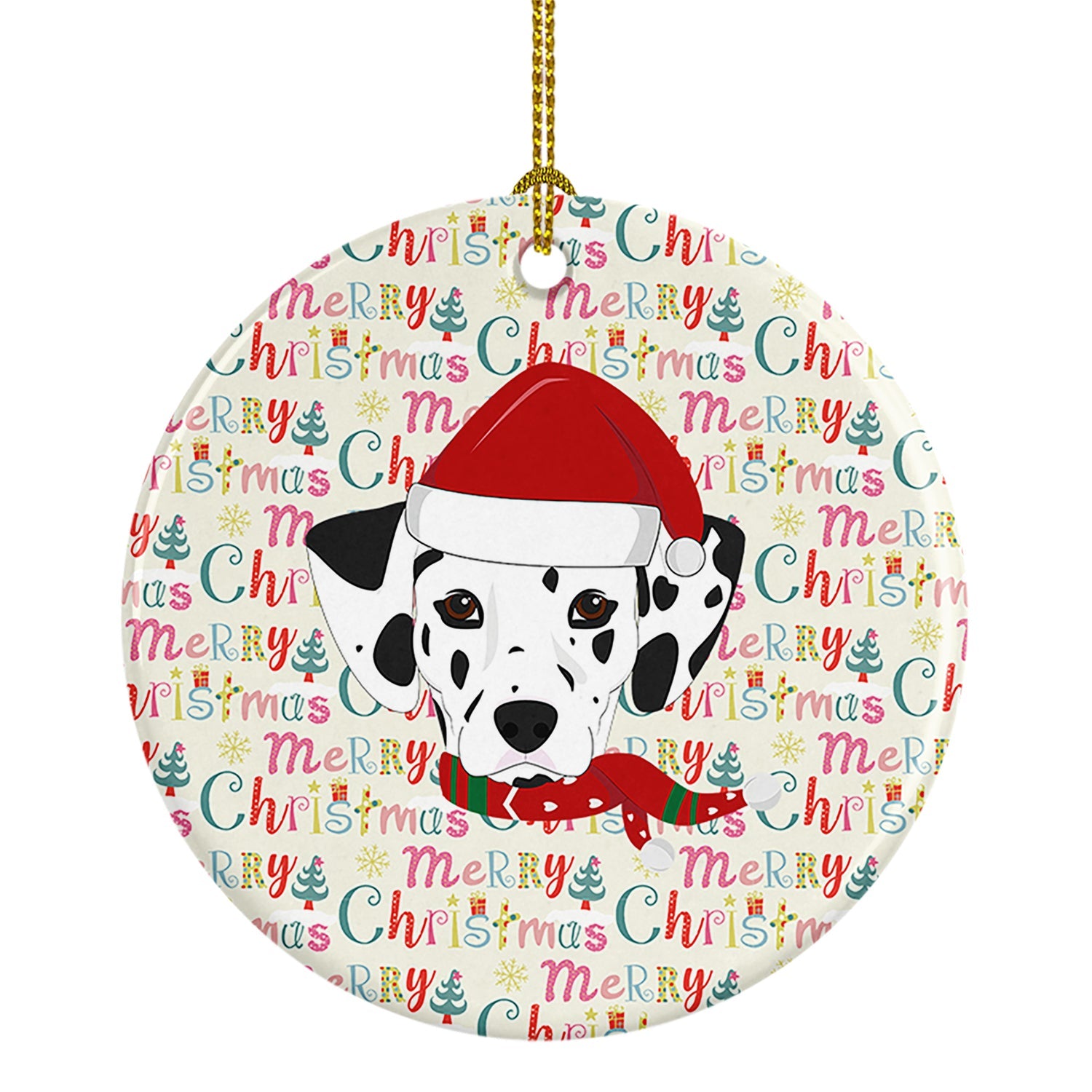 Decorate your space with our Christmas Dalmatian artwork on a Ornament. Add a touch of personalized charm to your Christmas tree this holiday season with our Ceramic Ornament. Measuring 2.8125 inches in diameter, this round porcelain ornament beautifully reflects your festive lights, enhancing your holiday decor. The gloss surface sets off the vibrant, full-color artwork contributed by one of our talented artists, bringing a pop of color and joy to your tree. This Ceramic Ornament doesn't stop at being merely decorative. The white back is designed for personalization. Write a heartfelt message, mark a special year, or inscribe a date with a paint pen or a permanent marker to create a treasured memento. Please ensure you allow any personalization to dry thoroughly before handling to maintain the pristine finish. Included with the ornament is a delicate gold cord for easy hanging. Made in the USA, this Ceramic Ornament makes an exceptional gift for a pet sitter, teacher, family member, or anyone you wish to share a little Christmas magic with. With its blend of style, charm, and personal touch, it's a meaningful addition to any Christmas tree.