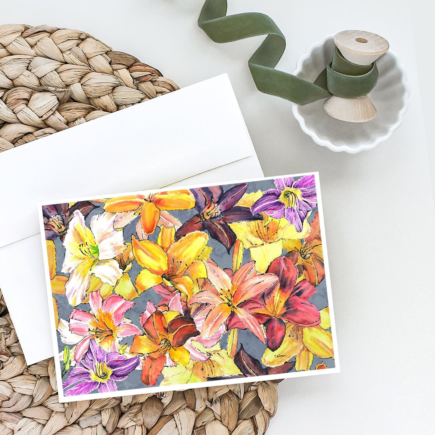 Day Lillies Greeting Cards -  Blank Note Cards – 8-Pack of Artist-Designed Cards with Envelopes