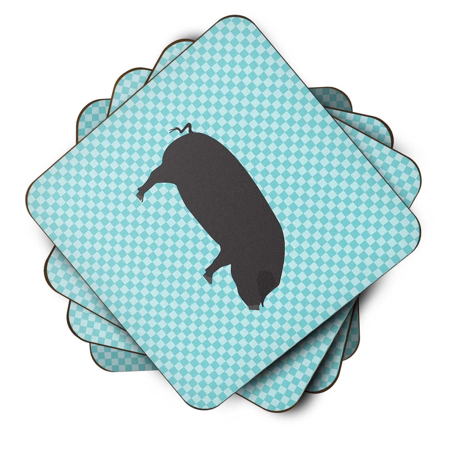 Devon Large Black Pig Blue Check Foam Coaster  BB8105FC
