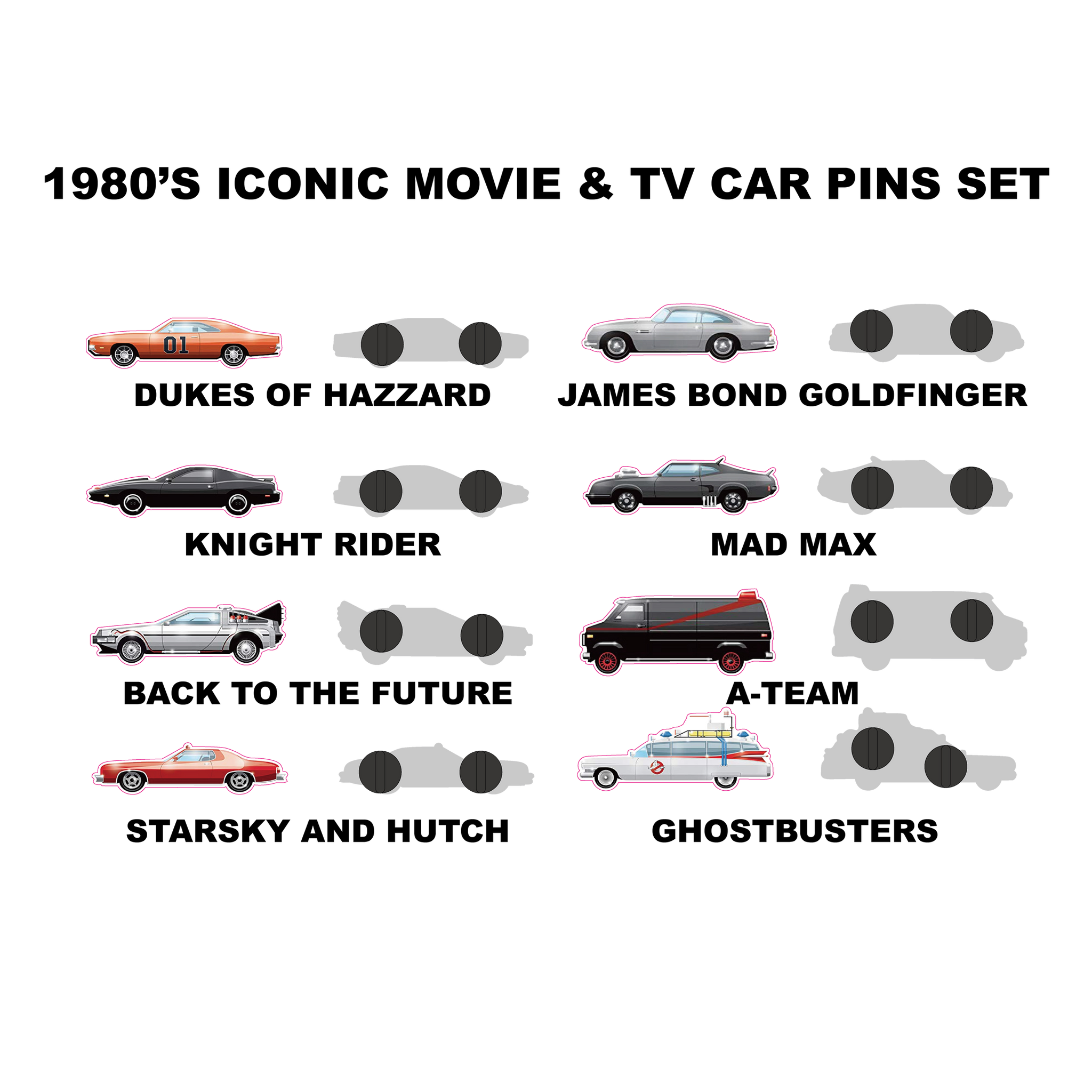 This set includes 8 two inch pins. Each pin has dual pin posts so they won't spin when worn. They come attached to a card in a plastic sleeve for retail sale.