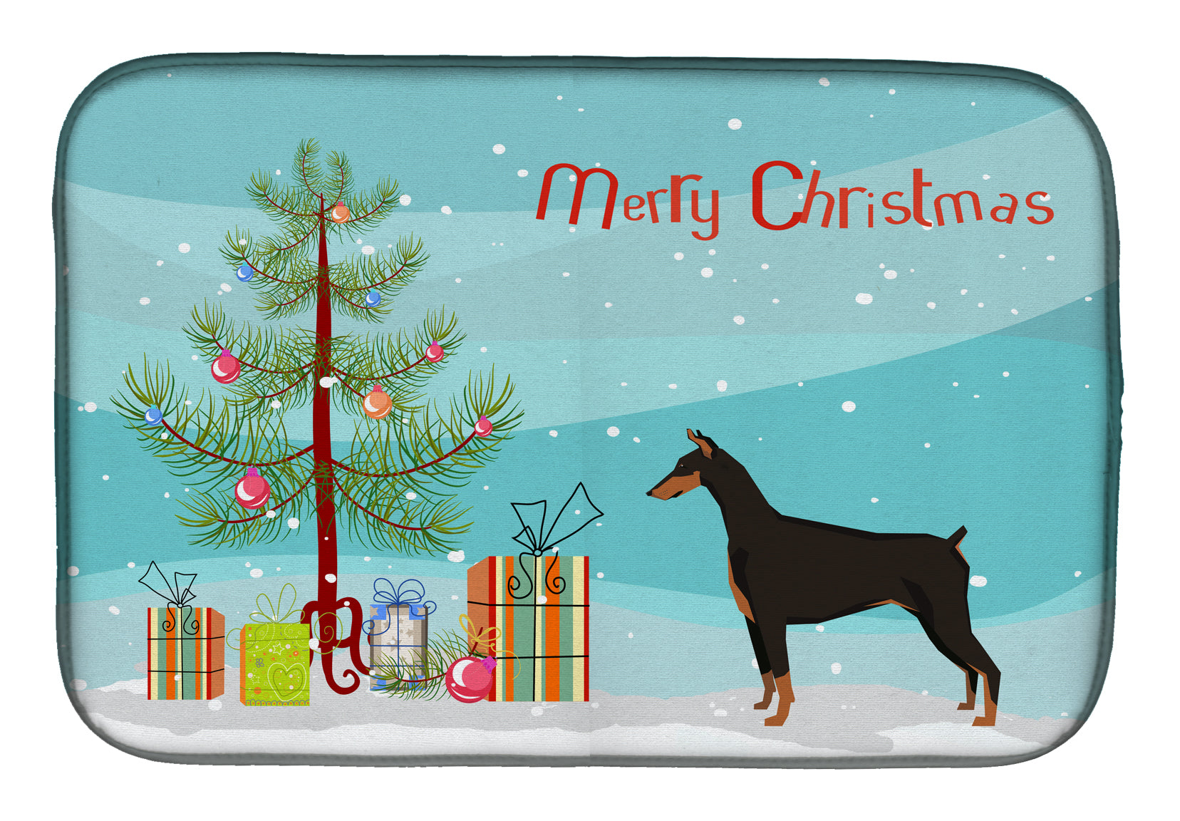 Decorate your space with our Christmas Doberman Pinscher artwork on a Dish Drying Mat. Say goodbye to messy countertops and soggy dish towels with our innovative dish drying mat. Our high-quality dish drying pad is designed to keep your countertops dry while offering a stylish and efficient solution. Whether you're air drying dishes, glasses, stemware, silverware, pots, pans, bottles, or even fruits and vegetables, our dish mat is the perfect choice. The 14 inches x 22 inches size fits most counters and dish drying racks, and the non-slip design ensures stability. Made with water-absorbent polyester and a polyurethane foam insert, our dish drying mat is not only functional but also durable. It's machine washable and printed in the USA for long-lasting use. The beautiful artwork adds flair to your kitchen decor, making it a perfect housewarming gift or present for any occasion. Upgrade your kitchen experience with our absorbent and versatile dish drying mat.