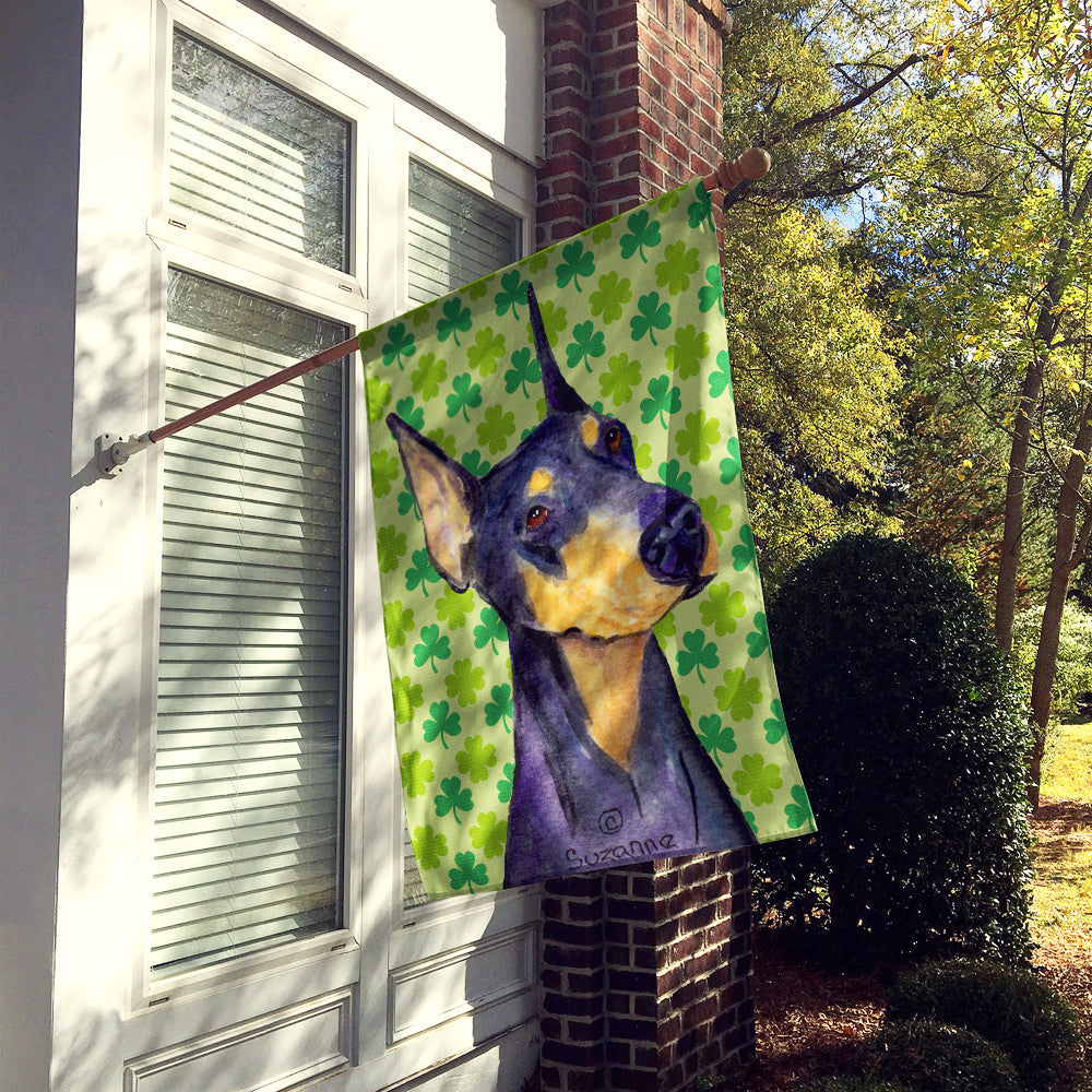 Decorate your space with our St Patrick's Day Doberman Pinscher artwork on a Large Flag. Presenting our Heavy Duty Polyester House Size Decorative Sleeve Pole Flag, a vibrant addition to enhance the aesthetic appeal of your home. This large decorative flag, measuring approximately 28 x 40 inches, offers ample coverage and visibility. Each flag is meticulously sewn and made individually, ensuring a unique piece that may slightly vary in size. It's a sleeve pole flag, designed to fit a standard decorative flag pole effortlessly. Please note that the flag pole and bracket are not included and should be purchased separately. What sets our flag apart is its dual-sided print. The design is mirrored on both sides of the fabric, allowing for uniform visibility regardless of the angle. Printed in full color, our flag showcases vibrant hues that truly stand out. To ensure lasting vibrancy and durability, the dyes are heat-set into the fabric. This ensures your flag remains bright and captivating through various weather conditions. Elevate the look of your home with our Heavy Duty Polyester House Size Decorative Sleeve Pole Flag!