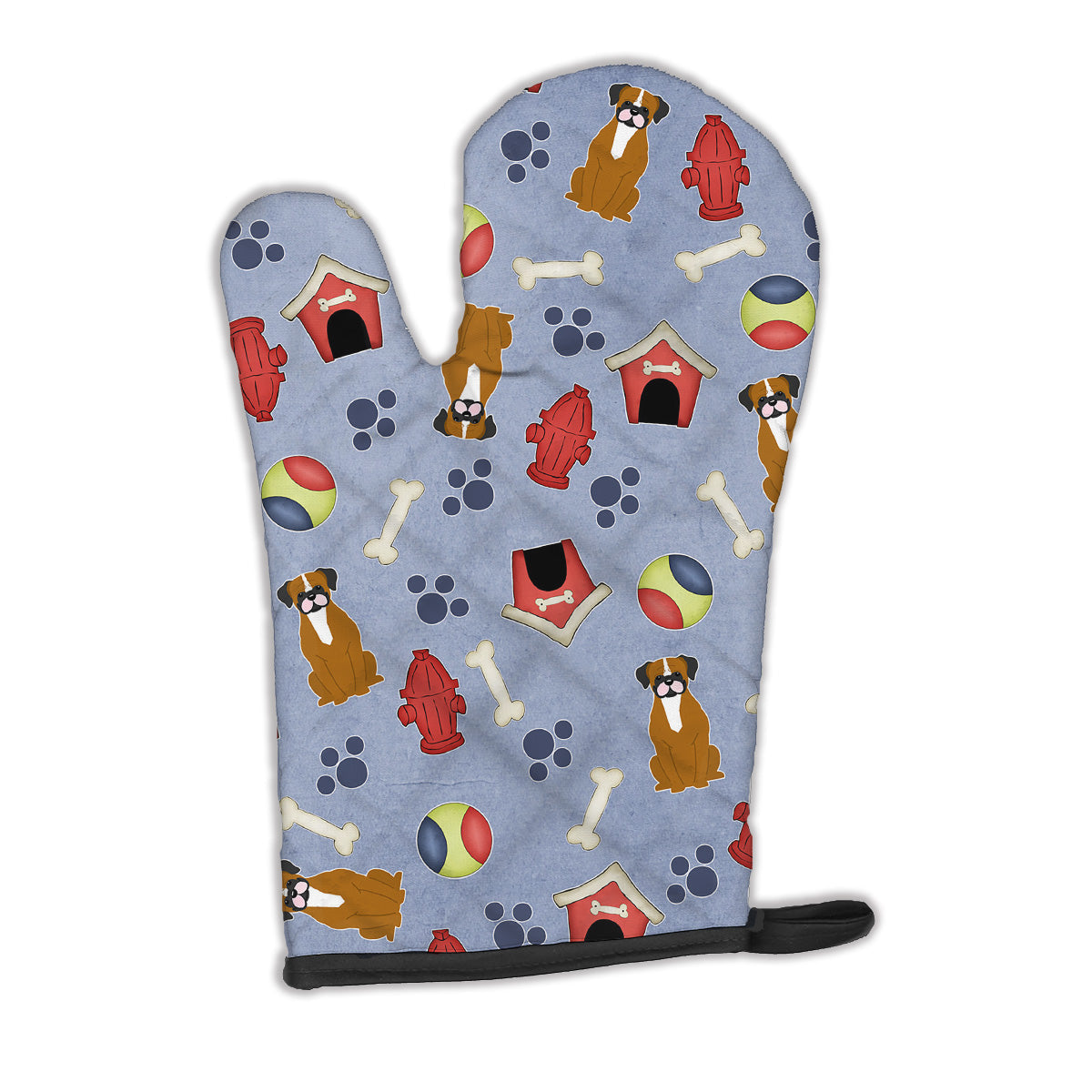 Decorate your space with our Boxer artwork on a Oven Mitt. Presenting our Large Right Hand Thick Heat Resistant Oven Mitt, an indispensable tool for any culinary enthusiast. This mitt boasts layers of quilted protection on both sides, providing outstanding resistance against extreme heat. Embellished with beautifully printed artwork, it adds an extra dash of charm to your kitchen decor. At about 12 inches long and 8 1/2 inches wide, this oven mitt offers a generous fit, accommodating a diverse range of hand sizes. Its design is enhanced by a sleek Black bias tape trim, finished with a convenient hoop for easy hanging. Fresh out of the packaging, the quilting process may give the mitt a stiff feel, but rest assured, it will soften with use and washing. Our mitt is crafted with a unique center fabric, Insul-Bright, a composite material made from polyester fibers, needle-punched through a nonwoven substrate and a reflective metallized film. This smart material resists both conduction and radiant energy, reflecting heat back to its source, all while remaining breathable. Our oven mitt is machine washable and safe for tumble drying. It's a perfect gift for your favorite Chef, BBQ enthusiast, or just a little treat for yourself! Experience safety, style, and convenience rolled into one with this exceptional oven mitt.