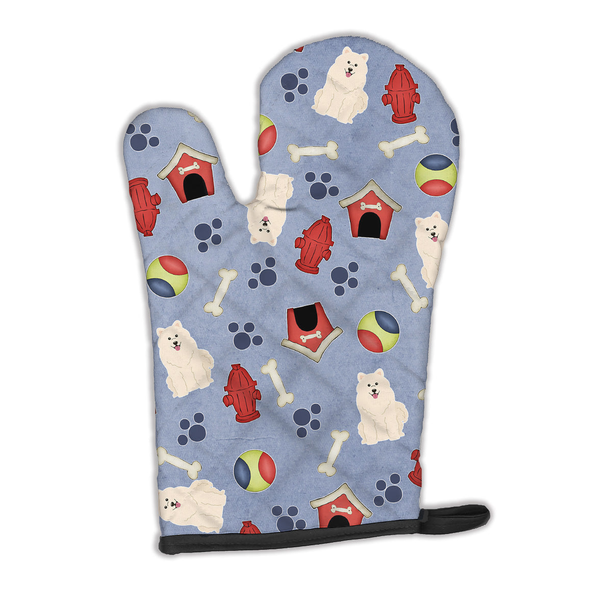 Decorate your space with our Samoyed artwork on a Oven Mitt. Presenting our Large Right Hand Thick Heat Resistant Oven Mitt, an indispensable tool for any culinary enthusiast. This mitt boasts layers of quilted protection on both sides, providing outstanding resistance against extreme heat. Embellished with beautifully printed artwork, it adds an extra dash of charm to your kitchen decor. At about 12 inches long and 8 1/2 inches wide, this oven mitt offers a generous fit, accommodating a diverse range of hand sizes. Its design is enhanced by a sleek Black bias tape trim, finished with a convenient hoop for easy hanging. Fresh out of the packaging, the quilting process may give the mitt a stiff feel, but rest assured, it will soften with use and washing. Our mitt is crafted with a unique center fabric, Insul-Bright, a composite material made from polyester fibers, needle-punched through a nonwoven substrate and a reflective metallized film. This smart material resists both conduction and radiant energy, reflecting heat back to its source, all while remaining breathable. Our oven mitt is machine washable and safe for tumble drying. It's a perfect gift for your favorite Chef, BBQ enthusiast, or just a little treat for yourself! Experience safety, style, and convenience rolled into one with this exceptional oven mitt.